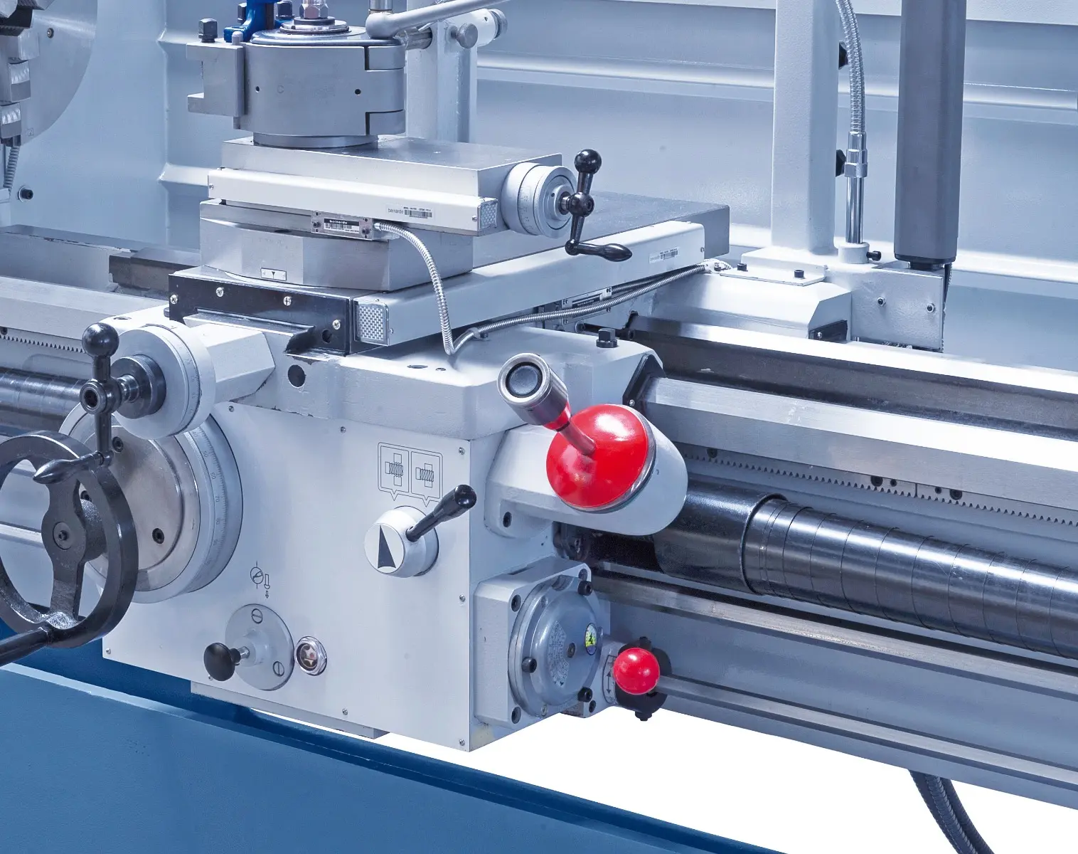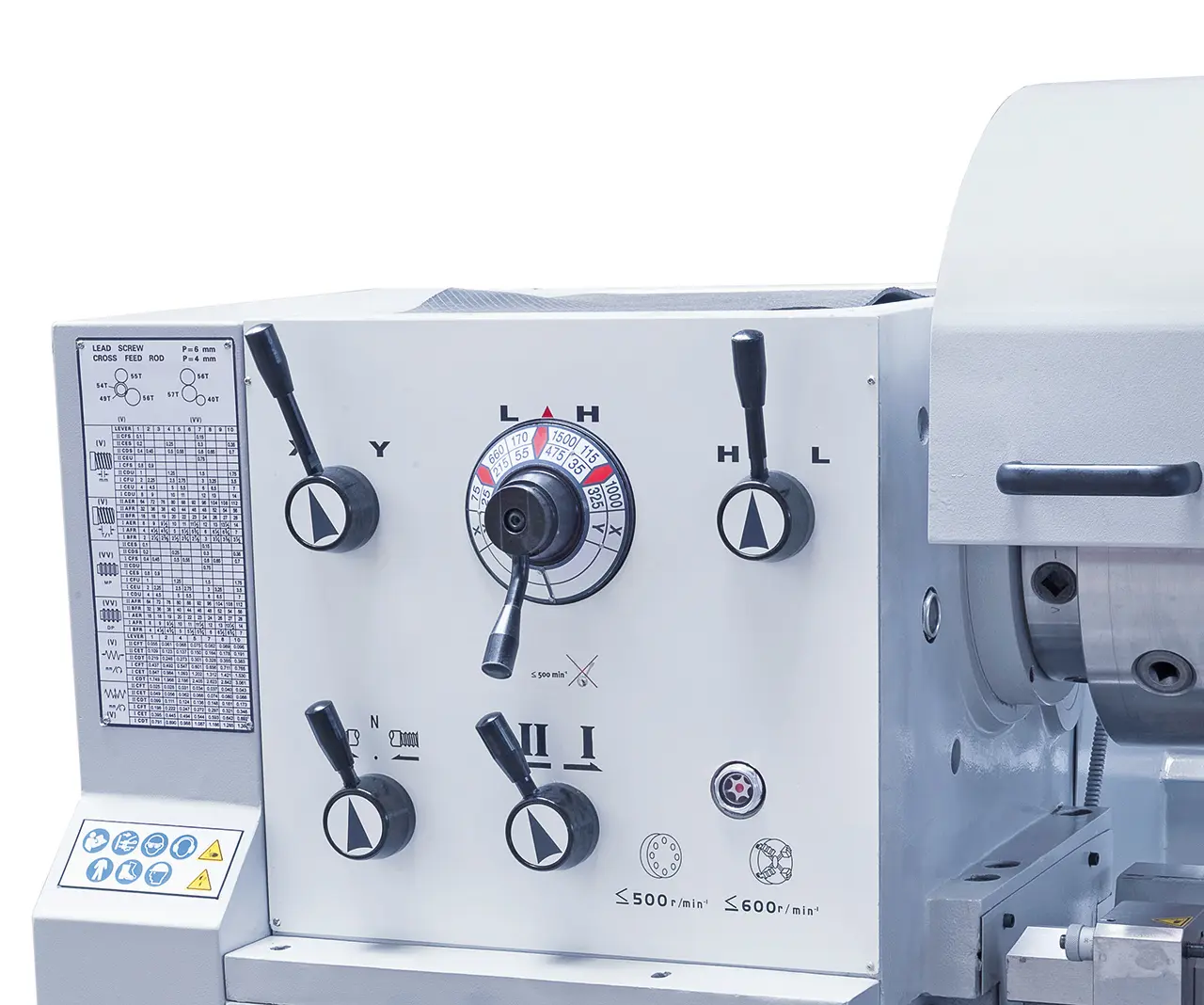 - Centrálně ovládané a praktické přepínání jednotlivých posuvů a nastavení řezání závitů mezi vodícím a tažným šroubem