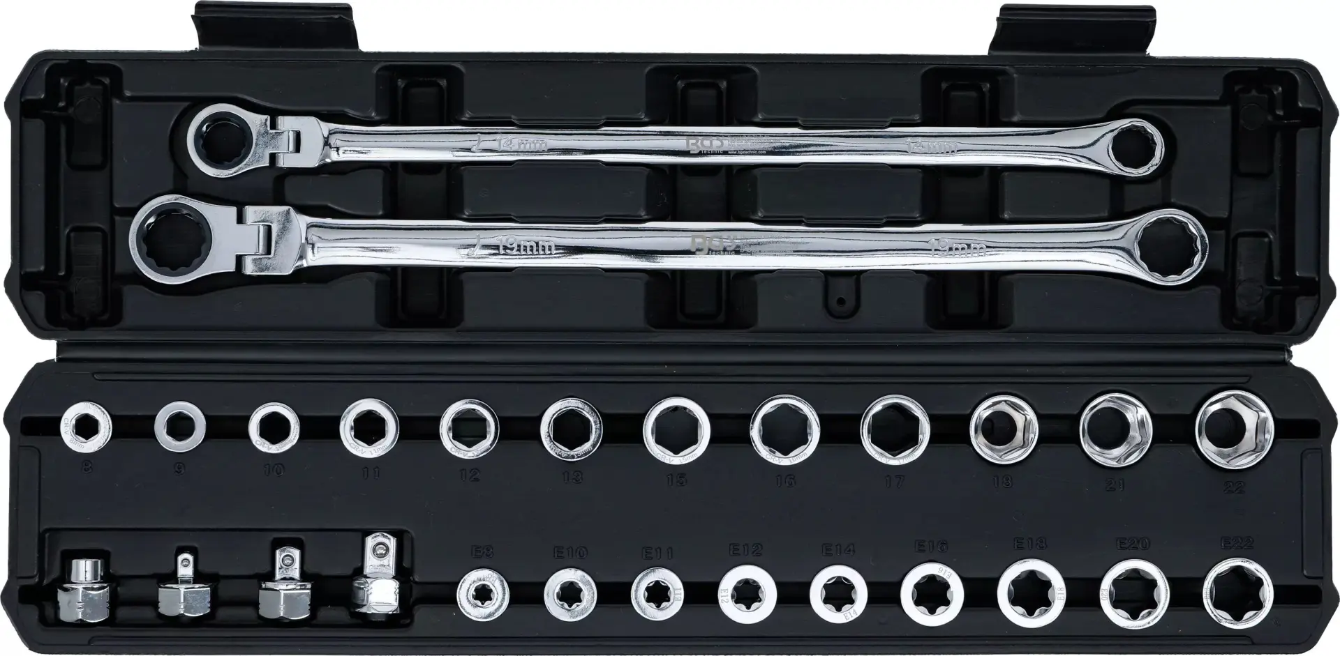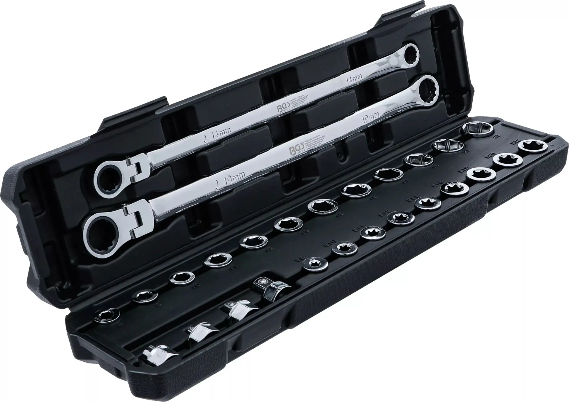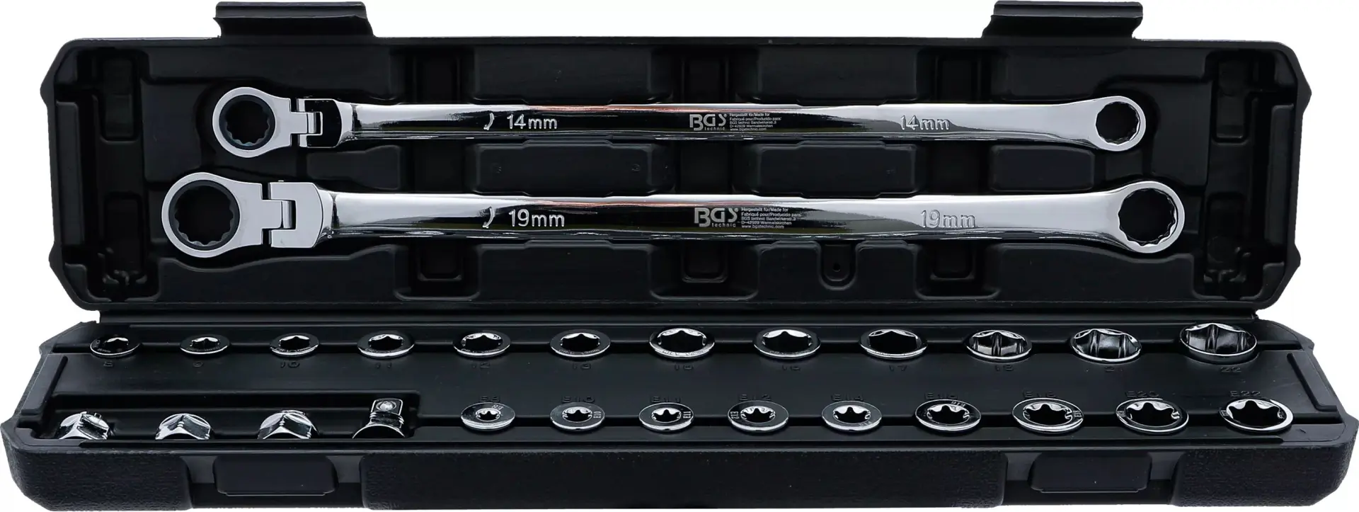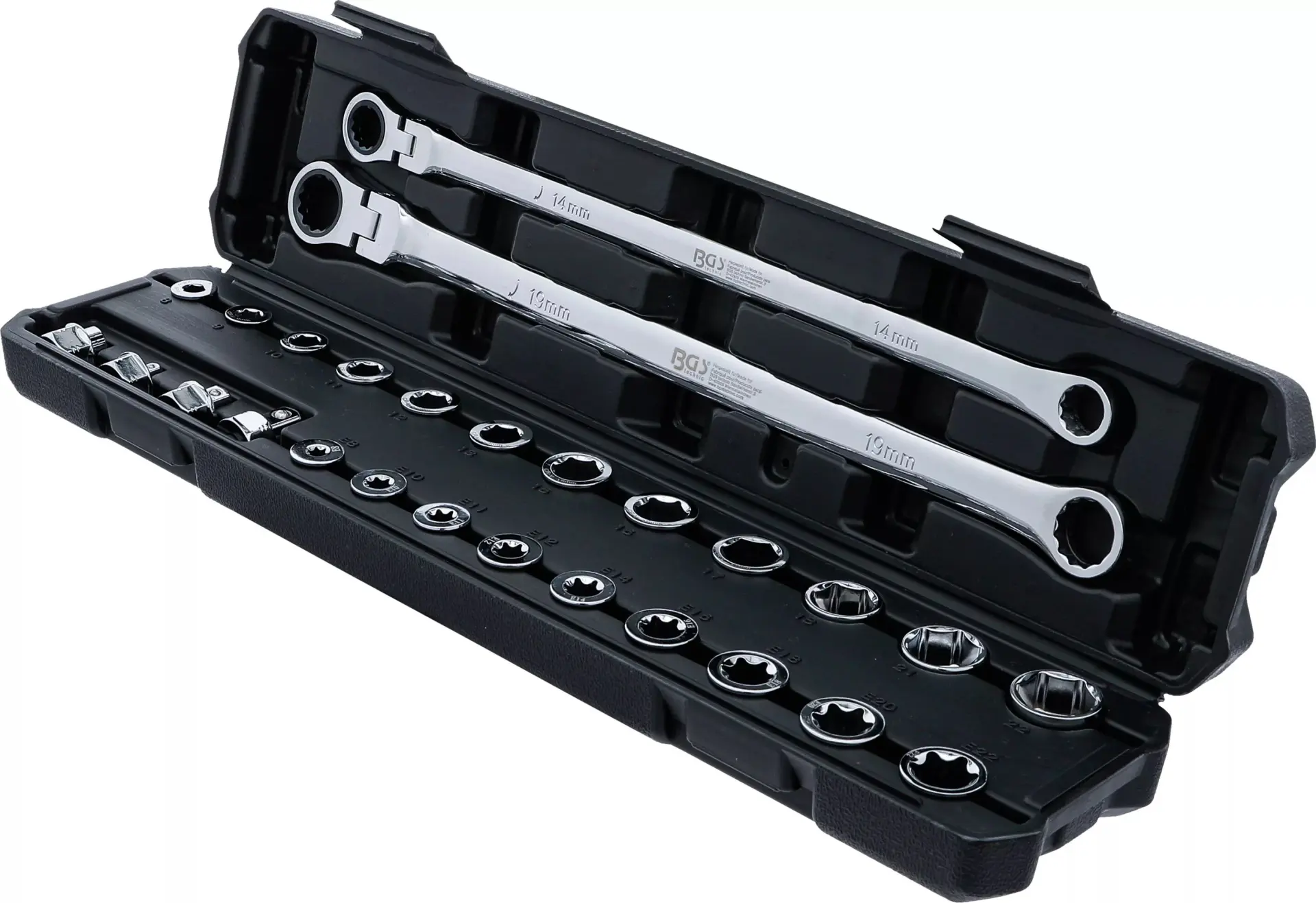 Oboustranné očkoploché ráčnové klíče 8 ÷ 22 mm BGS1074274 s kloubovou hlavou (Sada 27 dílů) (BGS1074274)