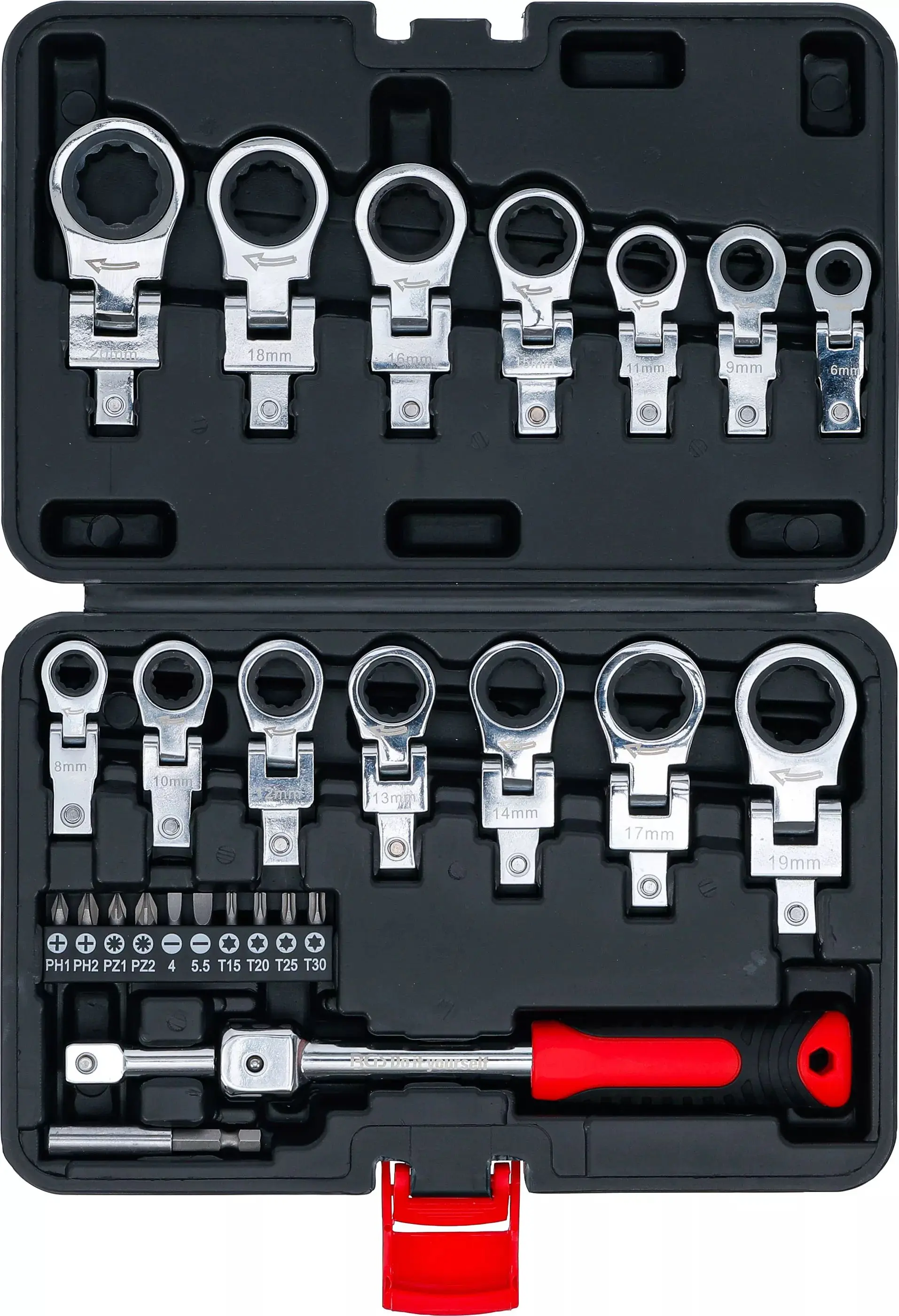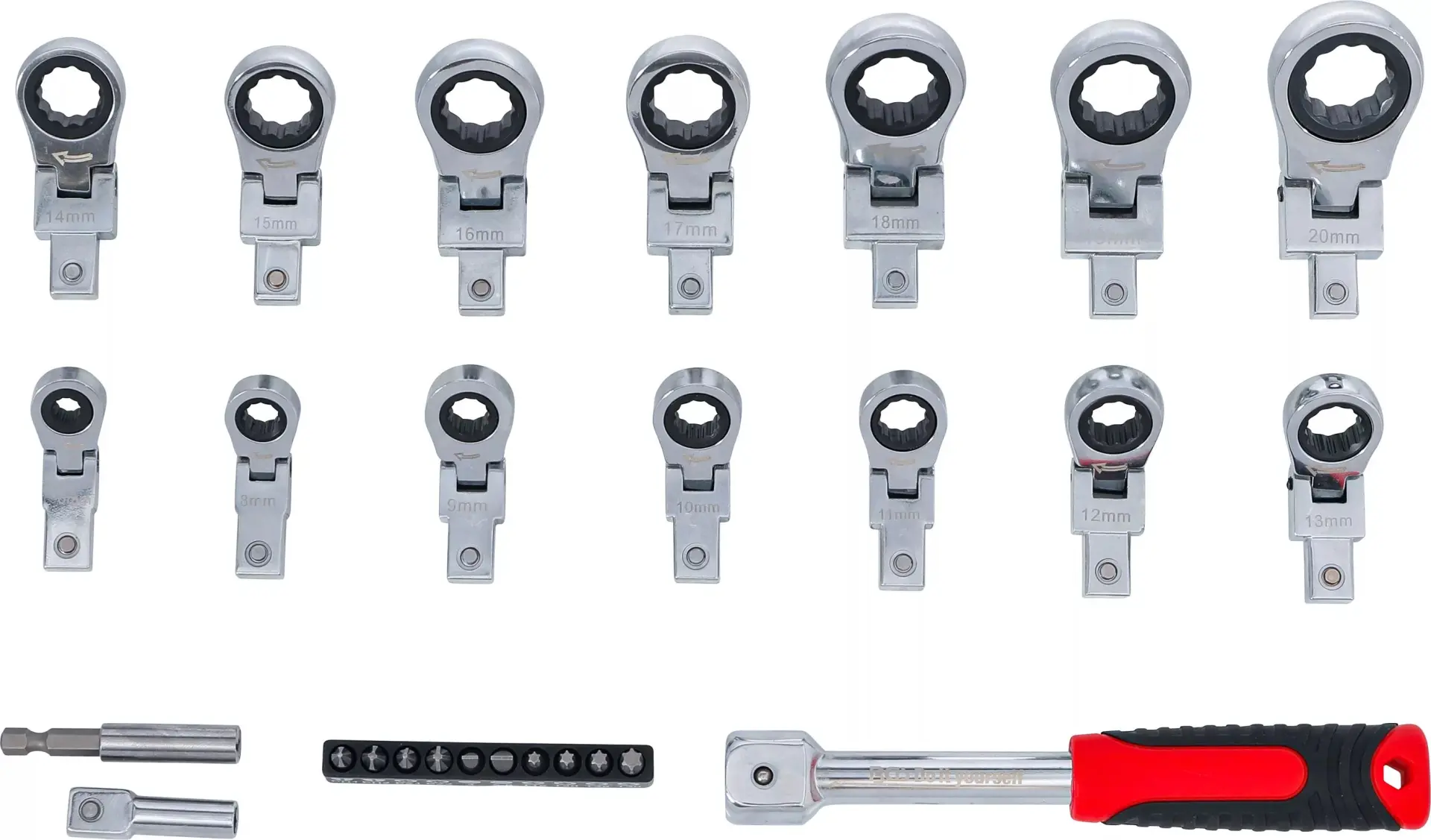 Ráčnové očkové klíče Push-Fit s kloubem a bity 6 ÷ 20 mm BGS1084529 (Sada 27 dílů) (BGS1084529)