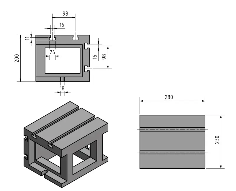 • přesný vrtací stůl, s přesnou povrchovou úpravou a paralelními T-drážkami