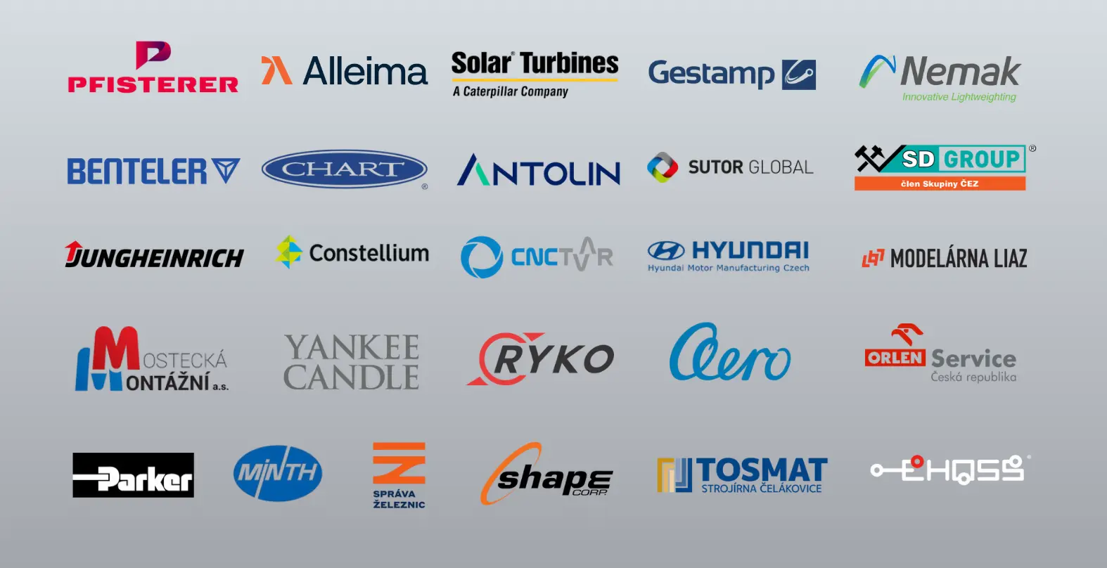 Významní zákazníci B2B z oblasti automotivu, leteckého a energetického průmyslu, výrobních společností, apod.: