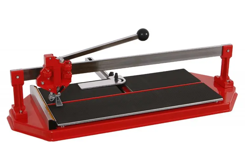 Řezačka je vybavena bočními dorazy pro přesné nastavení šířky řezu. To oceníte zejména při sériovém řezání dlaždic na stejný rozměr. Protiskluzové prvky na základně zvyšují stabilitu nástroje a minimalizují riziko posunutí během práce.