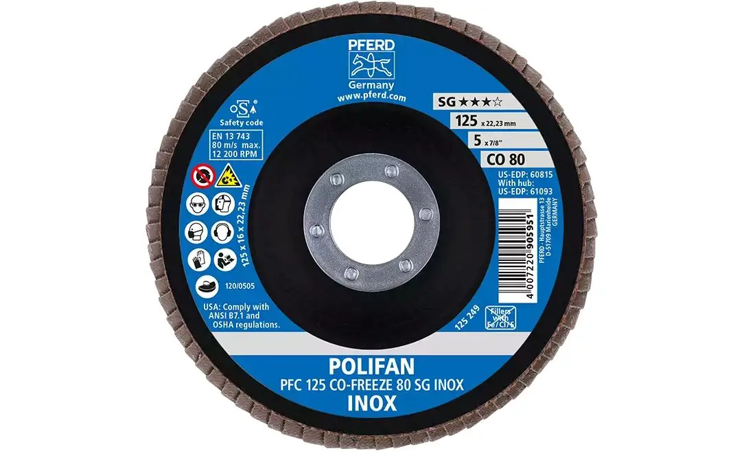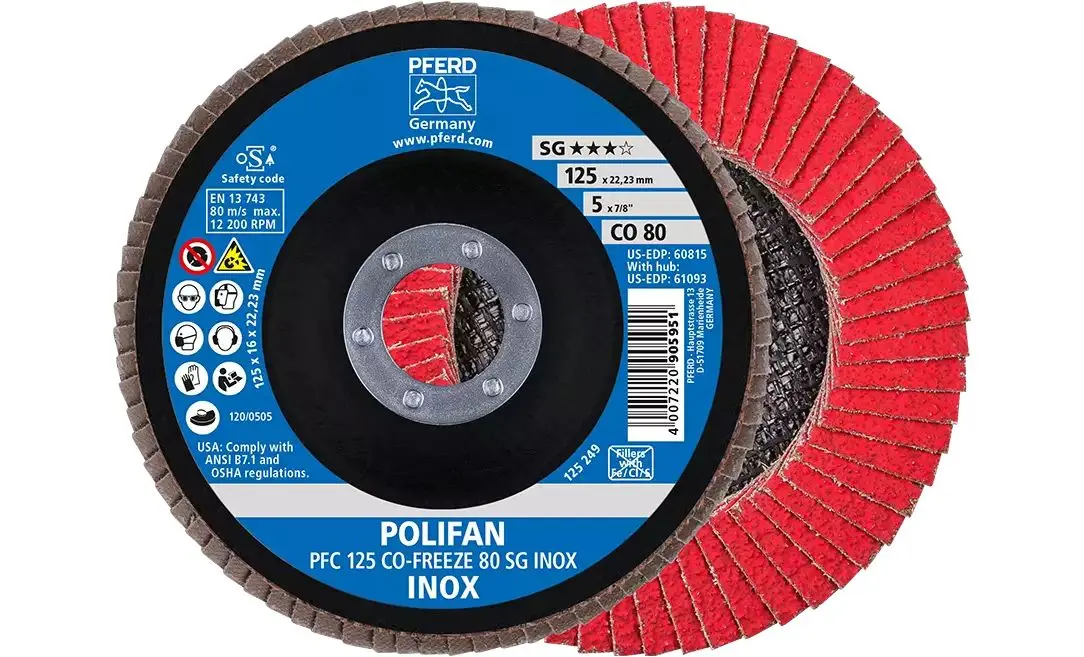 Lamelový kotouč POLIFAN speciálně vyvinutý pro nerezovou ocel (INOX) s ultra chladným broušením
