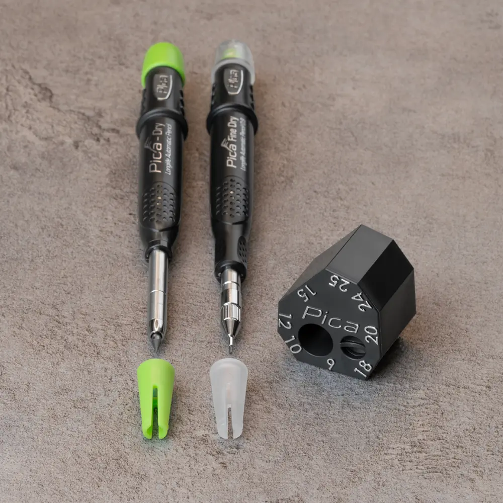 • Specializovaný nástroj (pomůcka) pro přesné značení a rýsování, který rozšiřuje možnosti standardní tužky Pica-Dry
