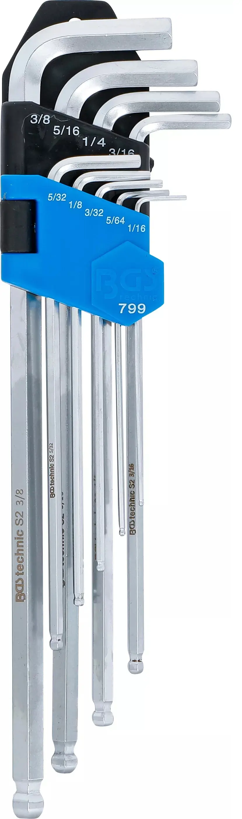 Zástrčné klíče inbus 1/16" ÷ 3/8" palcové s koulí. (Sada 9 dílů). BGS 799 (BGS100799)