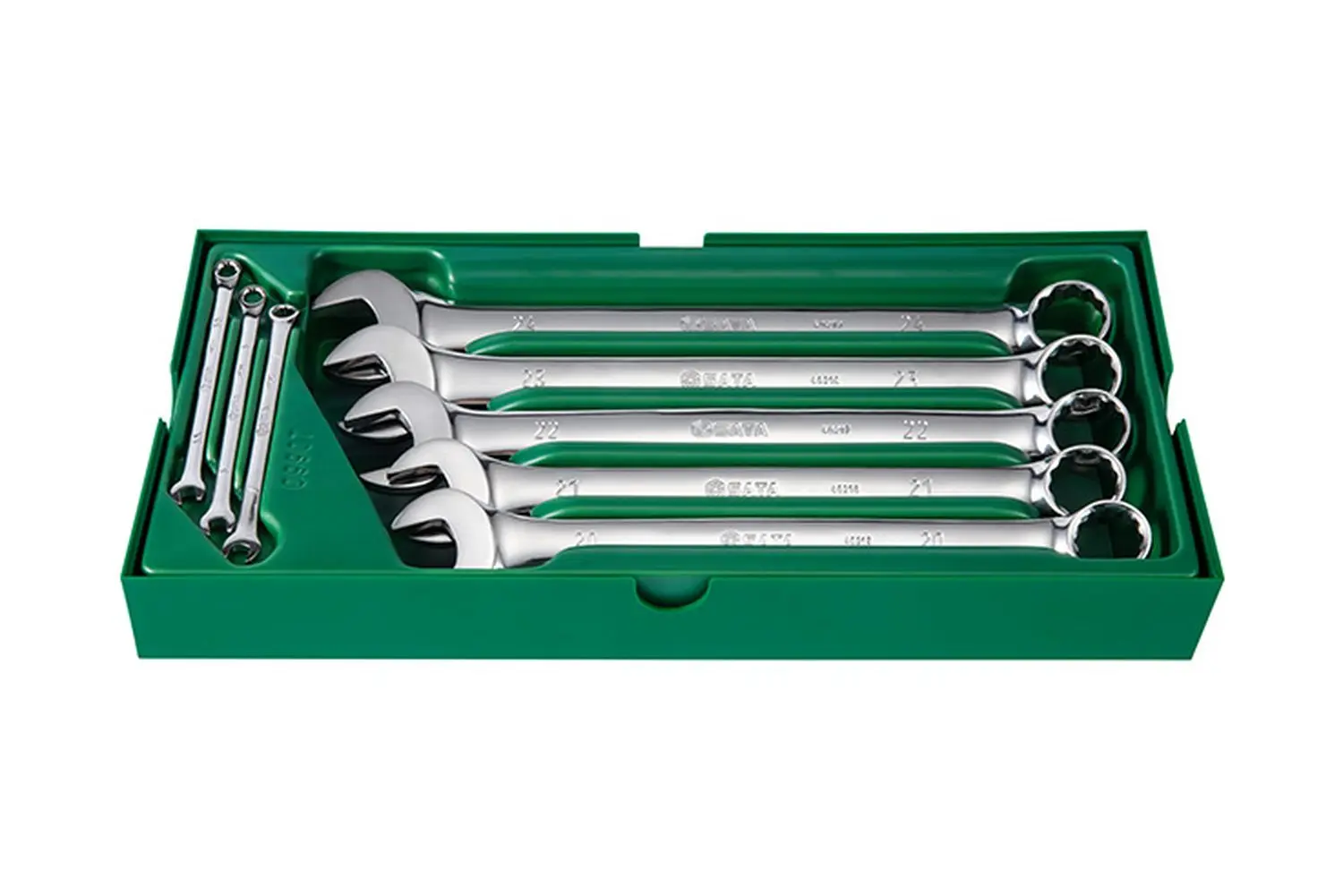 Očková část klíče je navržena pro pevné uchopení šroubu, zatímco otevřená část umožňuje rychlé nasazení a uvolnění. Tato kombinace zvyšuje efektivitu práce a šetří čas při opakovaných úkonech. Sada je vhodná pro použití v domácnosti, garáži i na cestách.