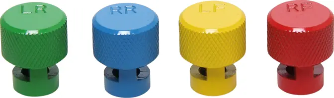 Tato sada obsahuje čtyři barevně rozlišené krytky určené pro ventily s monitorováním tlaku v pneumatikách (TPMS). Každá krytka je označena jinou barvou, což usnadňuje identifikaci jednotlivých kol a jejich správné umístění při výměně nebo údržbě pneumatik.