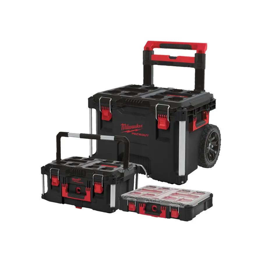 Sada kufrů Milwaukee Packout 4932499041 obsahuje tři odolné kufry s modulárním systémem, které umožňují snadné stohování a přepravu nářadí i příslušenství. Robustní konstrukce chrání obsah před nárazy a vlhkostí.