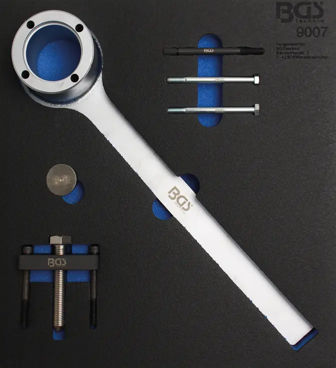 Sada obsahuje nástroje potřebné pro bezpečné zajištění a uvolnění řemenice klikového hřídele. Je vhodná pro použití v profesionálních servisech i domácích dílnách, kde je kladen důraz na přesnost a správný postup při údržbě motoru.