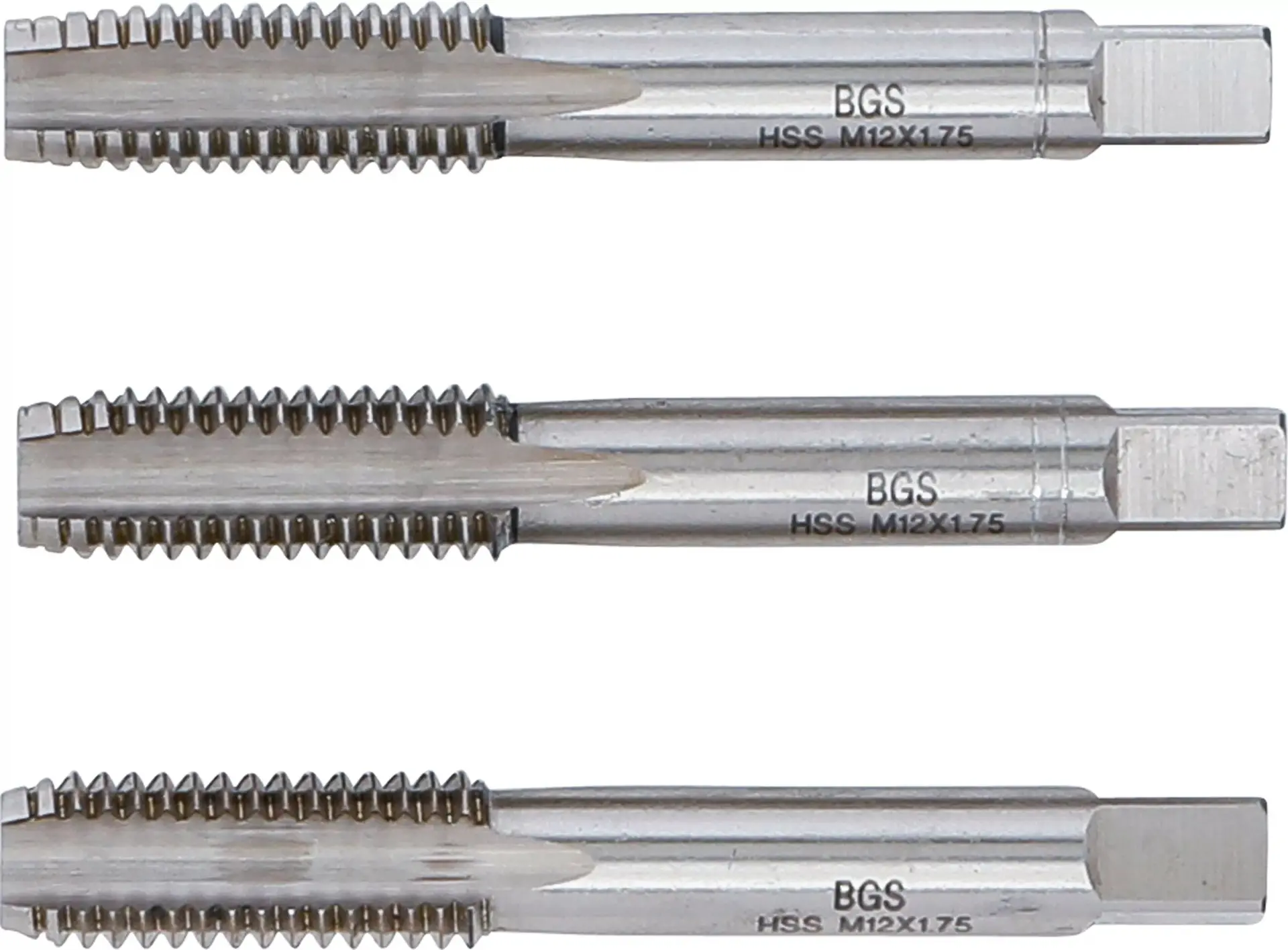 Sadový závitník M12 x 1,75 mm BGS100936 HSS-G je určen pro řezání metrických závitů do oceli, litiny a neželezných kovů, vyrobený z rychlořezné oceli. Vhodný pro ruční i strojní použití, umožňuje přesné a čisté vytvoření závitu.