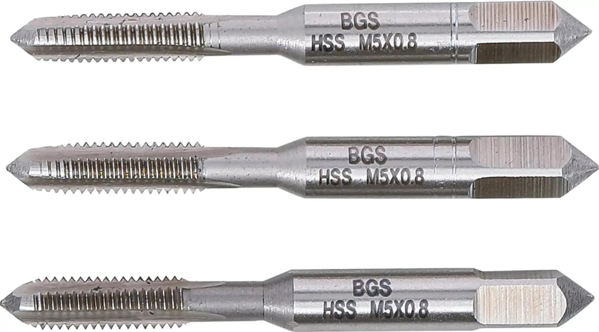 Sadový závitník M5 x 0,8 mm BGS100932 HSS-G je určen pro přesné řezání metrických závitů do kovu, vyrobený z rychlořezné oceli pro dlouhou životnost. Vhodný pro ruční i strojní použití, splňuje normu DIN 371.