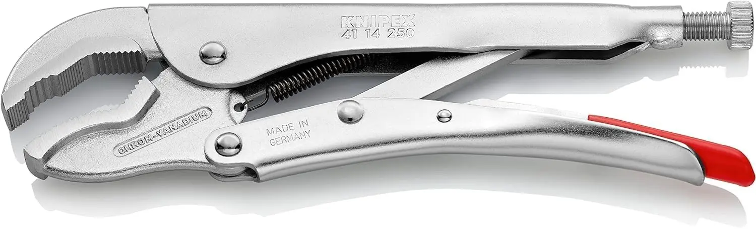 Samosvorné kleště KNIPEX 41 14 250 s délkou 250 mm a chromovaným povrchem umožňují pevné uchopení materiálu díky samosvornému mechanismu. Ergonomicky tvarované rukojeti zajišťují pohodlnou manipulaci při práci.