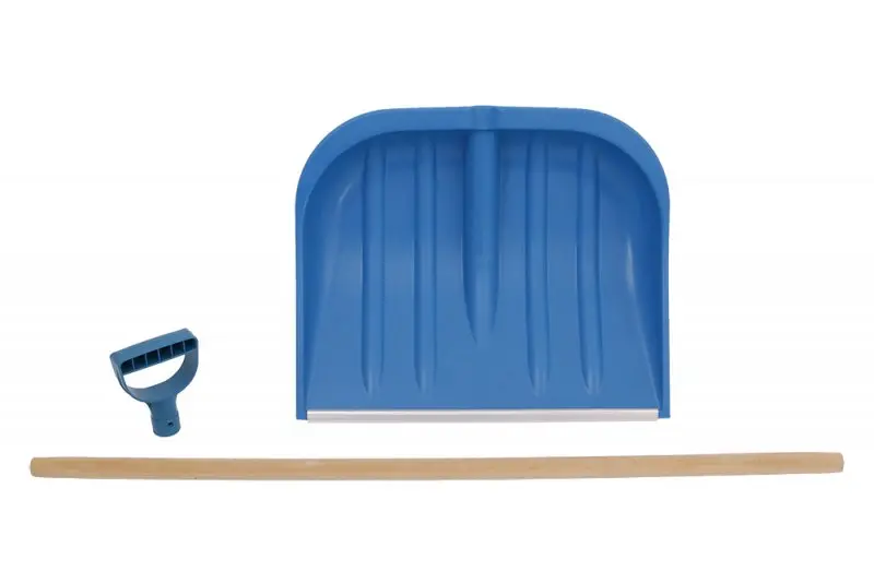 Hlavní část tvoří pevná plastová lopata, která je odolná vůči nízkým teplotám a běžnému mechanickému opotřebení. Materiál je navržen tak, aby se na něj sníh méně lepil, což usnadňuje práci i při mokrém nebo těžkém sněhu.