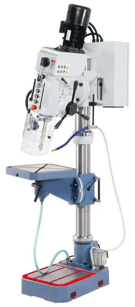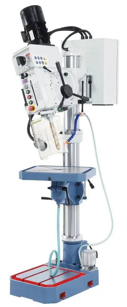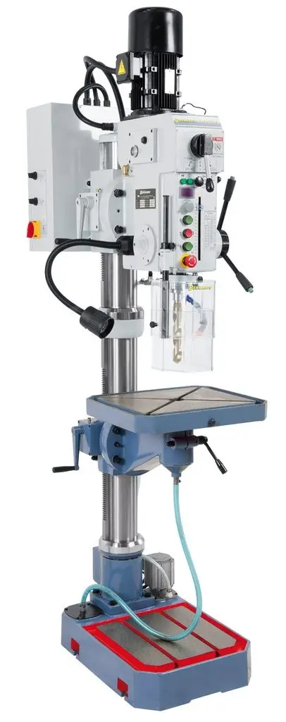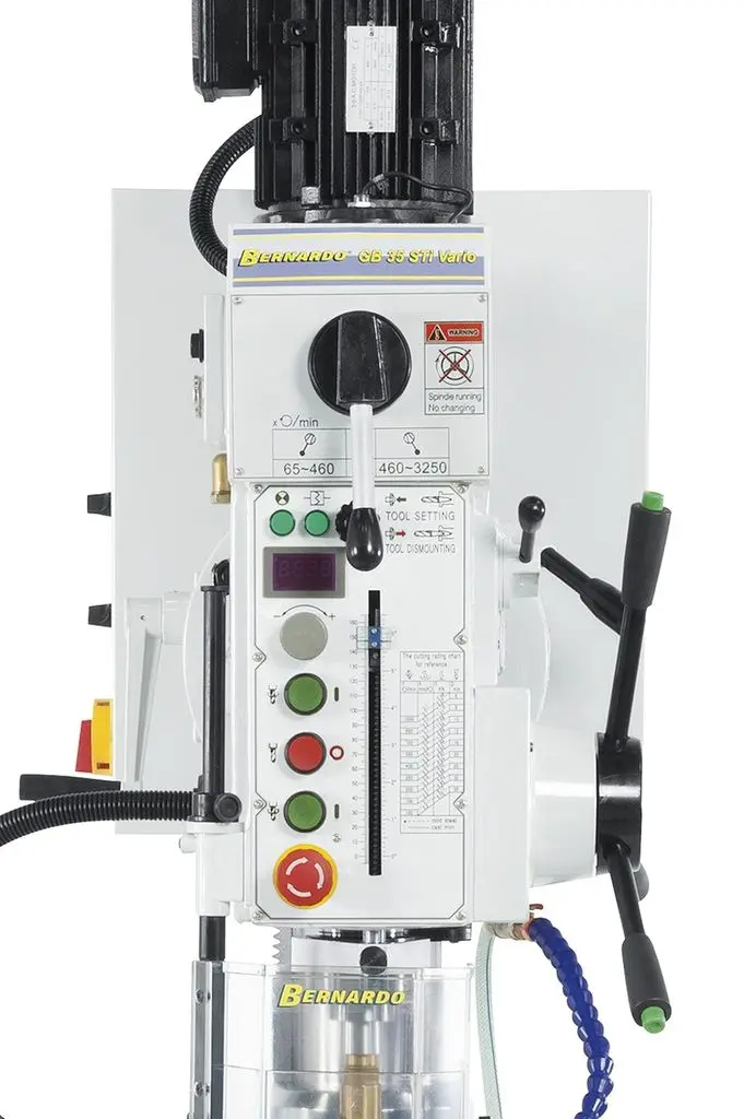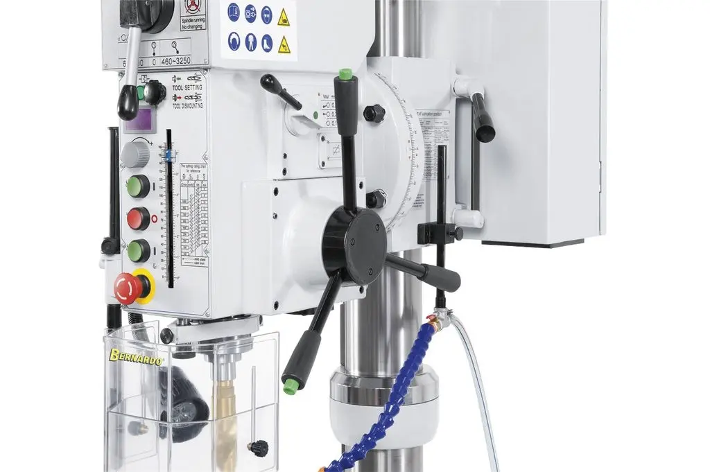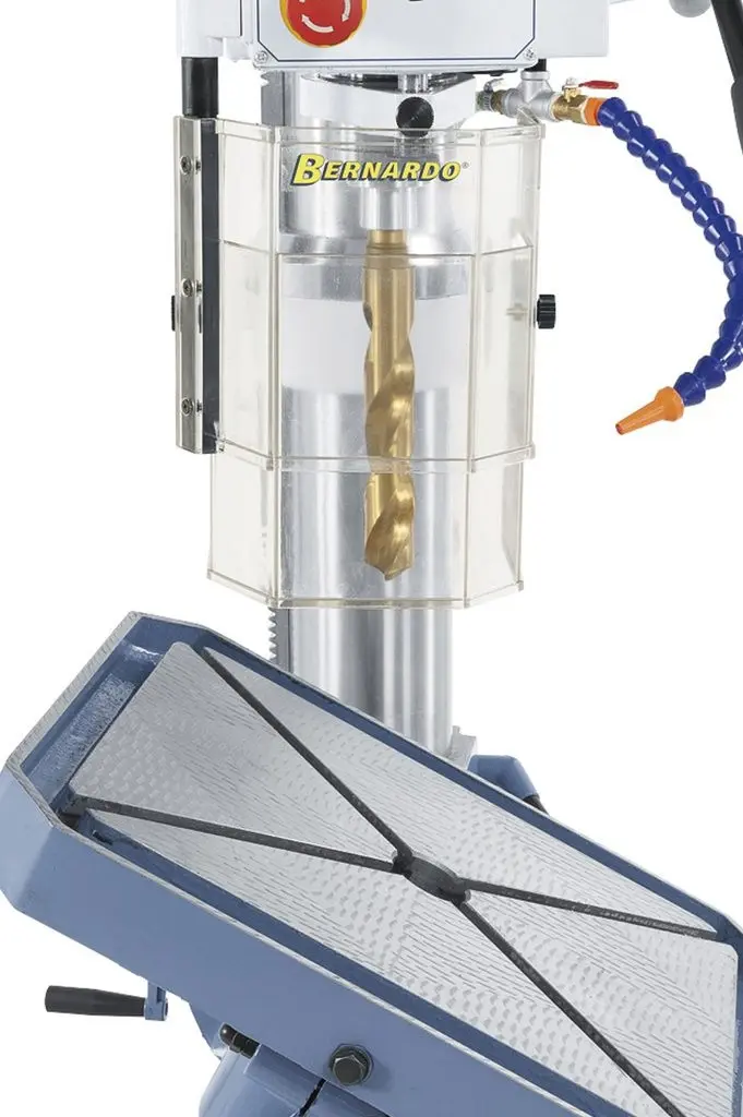 Mnohostranně využitelný typ vrtačky Bernardo s převodovkou, plynulou regulací otáček, automatickým posuvem vřetene a digitálním ukazatelem otáček. Má také oboustranně naklápěcí vrtací hlavu s převody pro rozšíření použití při vrtání a frézování pod úhlem