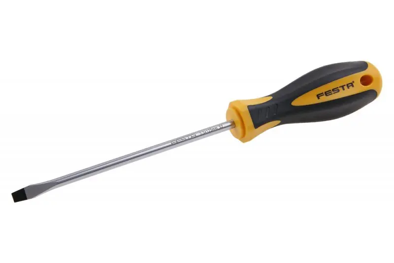 FESTA šroubovák plochý 5.5x125mm je praktickým pomocníkem pro každého, kdo potřebuje spolehlivý nástroj pro montáž, opravy nebo údržbu. Jeho rozměry umožňují snadné uložení do brašny nebo kufru s nářadím, takže jej budete mít vždy po ruce.