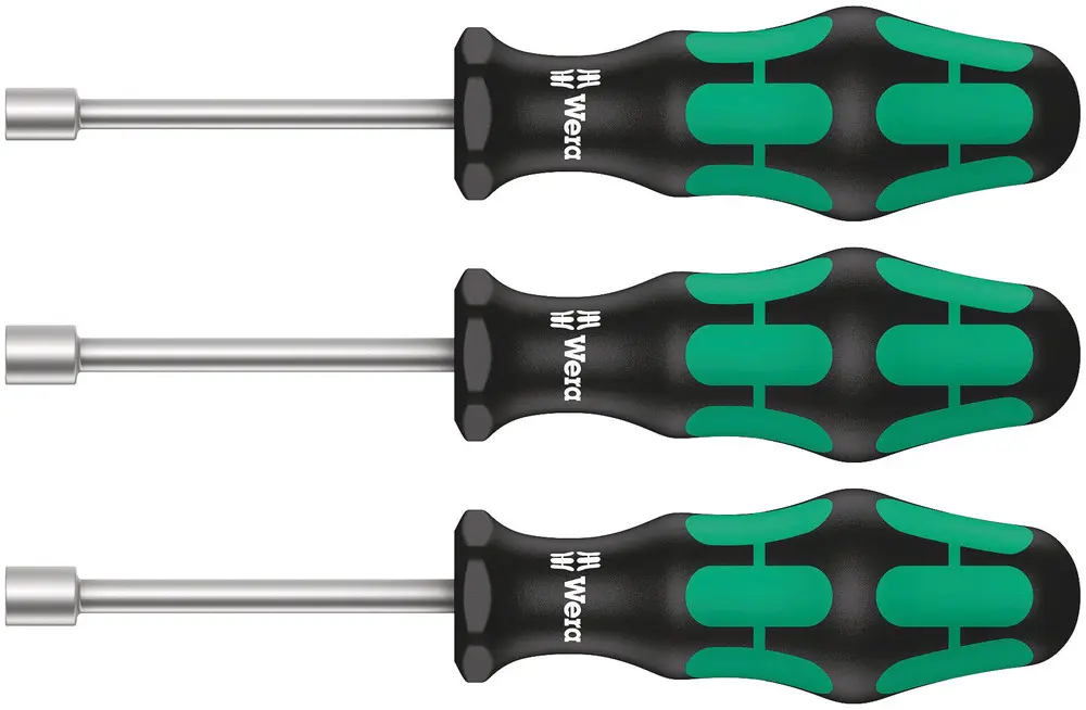 Nástrčný klíč - šroubovák s průchozím dutým dříkem od Wery. Dutý dřík pro dotahování závitových tyčí, neboť dutý dřík pojme závitovou tyč také přes matici. Součásti sady jsou vhodné především pro montáž a demontáž mísících baterií na umyvadlech. Vícekomponentní rukojeť Kraftform pro vysokou pracovní rychlost a obzvláště ergonomické dotahování. Kraftform Plus: Tvrdé zóny rukojeti pro vysokou pracovní rychlost, zatímco měkké zóny rukojeti zajišťují vysoký přenos utahovacího momentu. S šestihranem jako ochranou proti odkutálení. S označením rukojeti pro snadnější nalezení a srovnání nářadí. Pro šrouby s vnějším šestihranem.