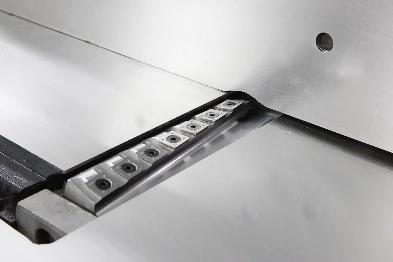 Snížení hlukové zátěže (přibližně 50% díky standardnímu spirálovému frézovacímu bloku a až 20násobné delší životnost břitů (vyplývá ze čtyřkrát použitelných břitových destiček z tvrdokovu)