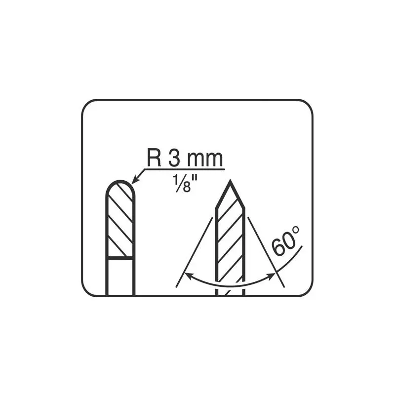 Druhý má 60° hrot pro nástroje, jako jsou V-nástroje
