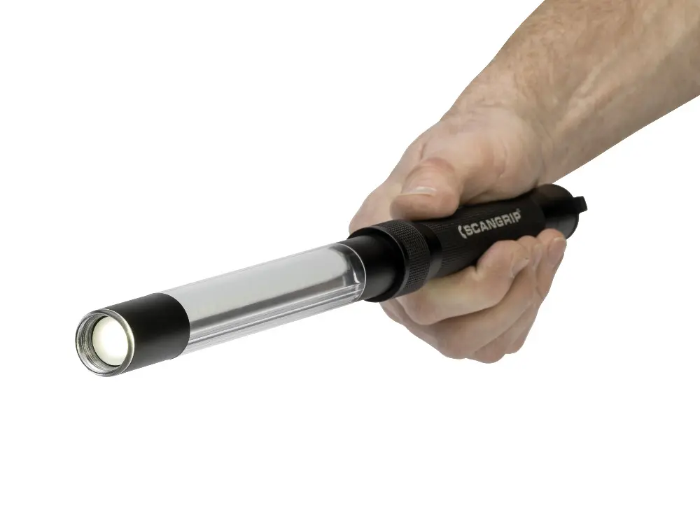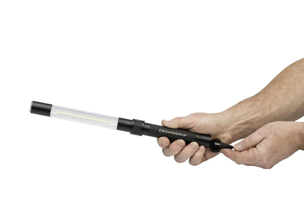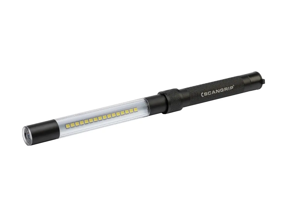 SCANGRIP LINE LIGHT R - inspekční světlo, až 400 lumenůSCANGRIP LINE LIGHT R - inspekční světlo. Světelný tok až 400 lumenů.SCANGRIP LINE LIGHT R - je mimořádně výkonné inspekční světlo a svítilna v jednom. Světelný tok až 400 lumenů.LINE LIGHT R svým štíhlým designem (25 mm) je možné osvětlit i ty nejužší a těžko přístupné oblasti.Koncentruje světlo v úhlu 75°, což zajišťuje extrémně jasné a silné osvětlení celého pracovního prostoru.K dispozici je pružný krk se silným vestavěným magnetem nebo přísavný držák jako optimální příslušenství.Technické parametry primárního světla:Zdroj světla: 16 SMD LEDsIntenzita osvětlení: 900 lux @ 0,5 mSvětelný tok: 400 lmStupeň krytí: IP65Baterie: 2600 mAhHmotnost: 450 gCRI: >80CCT: 6000 KPracovní teplota: -10°C až +40°CRozměry: 357 x 25 x 25 mmTechnické parametry sekundárního světla:Zdroj světla: 1 x CREE XP-G2Intenzita osvětlení: 1500 luxSvětelný tok: 150 lmCRI: >80Balení obsahuje:1x svítilna SCANGRIP LINE LIGHT R