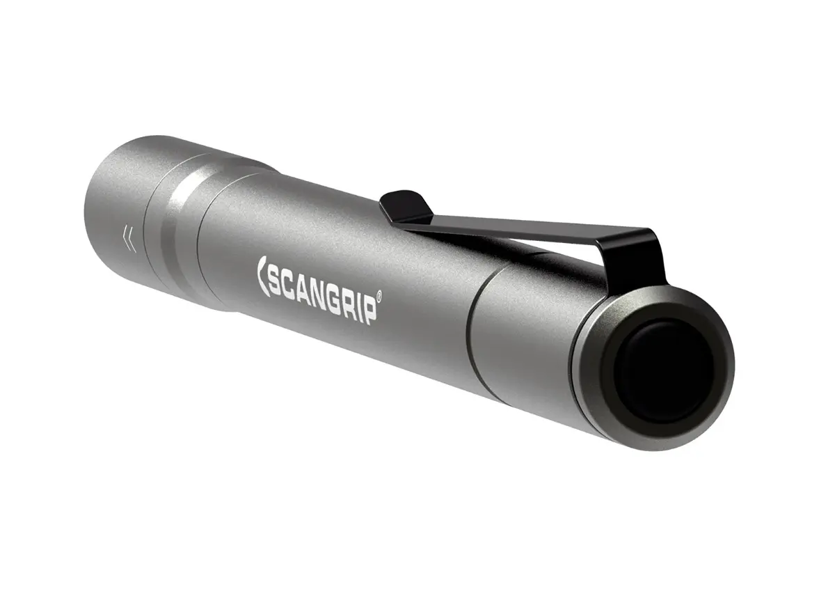SCANGRIP FLASH PEN je štíhlá, elegantní svítilna v atraktivním designu. Nabízí světelný tok až 200 lumenů. Je možné pohybovat úhlem paprsku objektivu od 10° - 60°. Dosvit svítilny až 80 m.SCANGRIP FLASH PEN je profesionální LED svítilna. Je velmi robustní a má mimořádně vysokou kvalitu určenou pro profesionální uživatele.Svítilna je vybavena vypínačem a režimem zesílení (boost mode), který vám umožní zvýšit světelný výkon ze 100 na 200 lumenů. Chcete-li aktivovat režim zesílení, podržte vypínáč na 2 vteřiny. Svítilna se po 60 sekundách automaticky přepne do normálního režimu. Prostřednictvím funkce ostření můžete měnit úhel paprsku od 10° do 60°.Svítilnu je možné umístit na náprsní kapsu pomocí spony. Pouzdro je vyrobeno z eloxovaného hliníku pro vysokou odolnost a ergonomické a bezpečné uchopení.Dosvit svítilny až 80 m.Technické parametry:Zdroj světla: CREE
