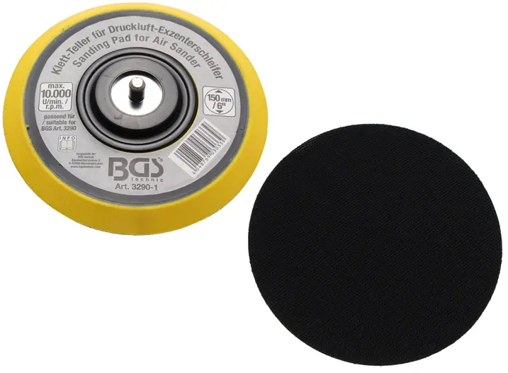 Podložka se suchým zipem o průměru 150 mm je určena pro použití s modely BGS 3290 a 8688. Je navržena tak, aby umožnila rychlou a snadnou výměnu brusných kotoučů bez nutnosti použití nářadí. Suchý zip zajišťuje pevné uchycení brusiva během práce a zároveň umožňuje jeho opakované připevnění.