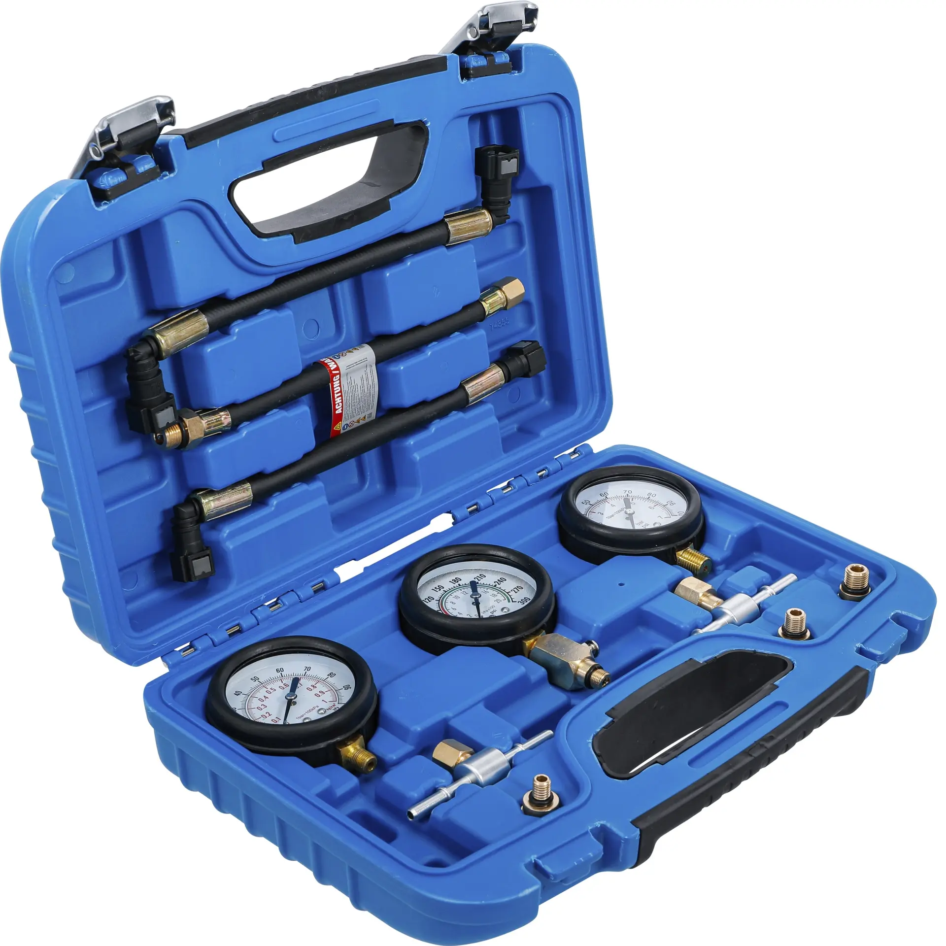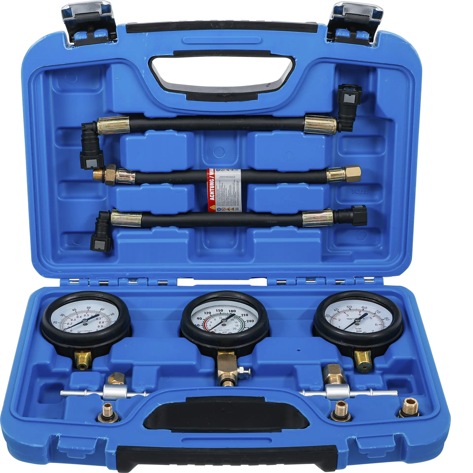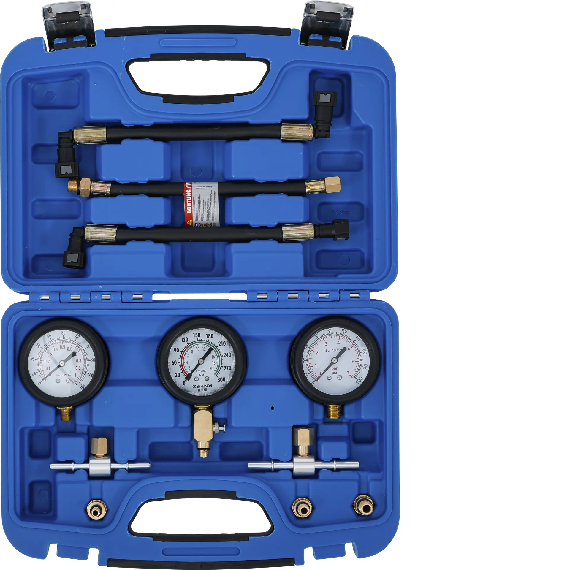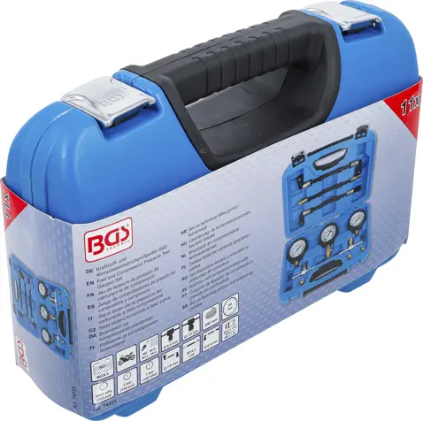Sada testerů BGS1074355 obsahuje 11 dílů pro měření komprese a tlaku paliva u motocyklů, včetně různých adaptérů pro širokou škálu modelů. Přehledné manometry a robustní provedení usnadní diagnostiku motoru.