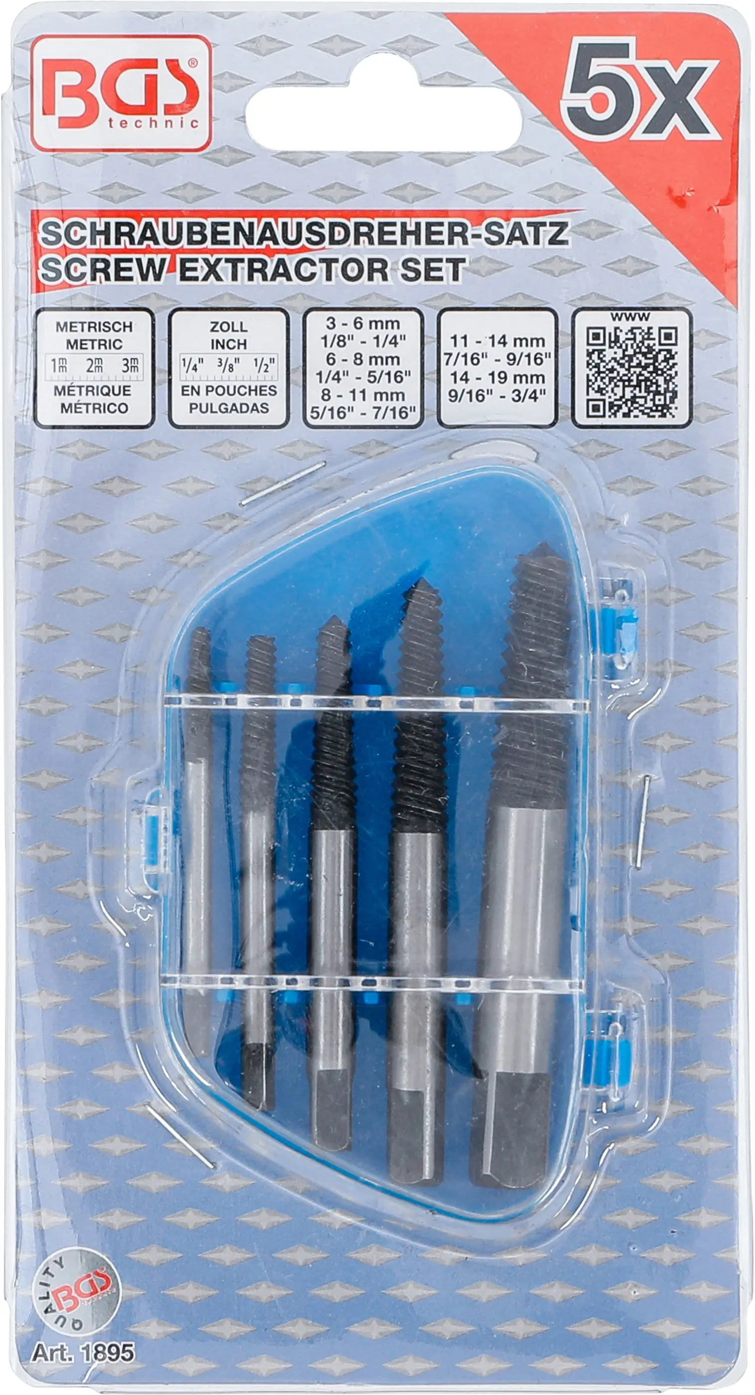 Vytahováky zalomených šroubů 6 ÷ 19 mm BGS101895 Sada 5 ks (BGS101895)