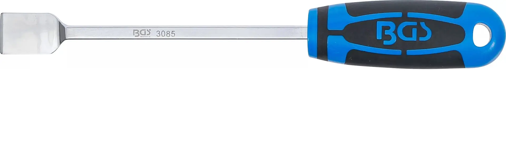 Plochý šábr BGS103085 s šířkou 25 mm a délkou 280 mm je určen pro přesné zarovnávání a odstraňování nerovností na kovových površích. Ergonomická rukojeť zajišťuje pevný úchop při práci.