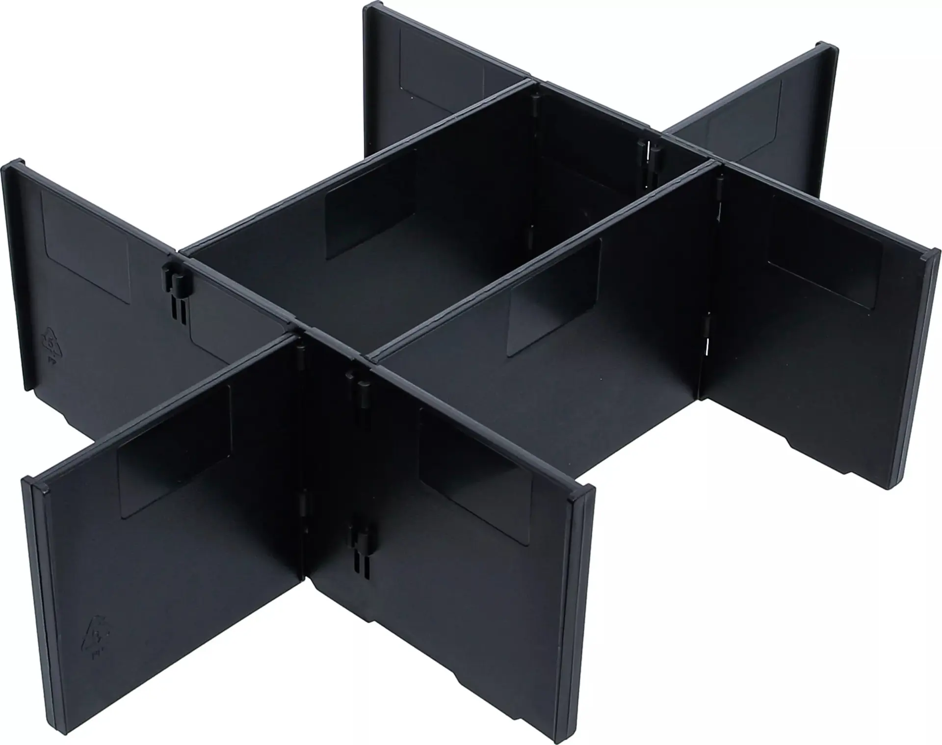Sada 6 dělících přepážek umožňuje snadné rozdělení vnitřního prostoru systémových kufrů velikosti M podle aktuálních potřeb. Kompatibilita s více typy kufrů zajišťuje variabilitu uspořádání.