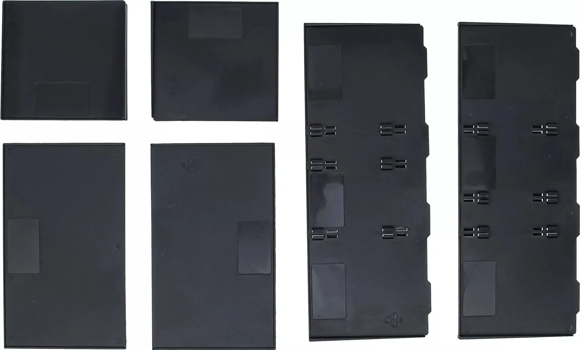 Dodávka obsahuje přepážky v různých rozměrech - 118 x 114 x 12 mm, 190 x 114 x 6 mm a 290 x 114 x 12 mm