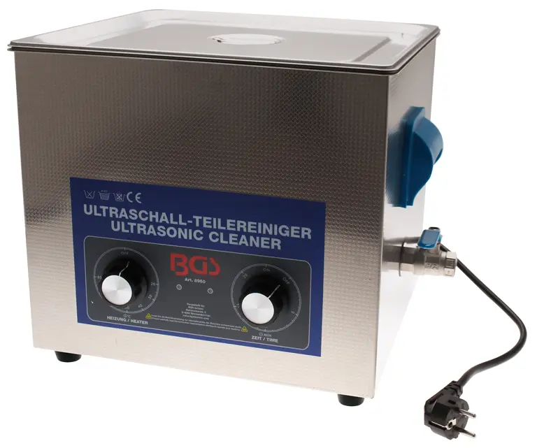 Ultrazvukový čistič dílů s objemem 13 litrů BGS108960 je určen pro důkladné čištění kovových i plastových součástek v dílnách, servisech nebo laboratořích. Díky ultrazvukové technologii dokáže odstranit nečistoty i z těžko přístupných míst, kam se běžné metody nedostanou. Přístroj je vhodný pro čištění nářadí, ložisek, karburátorů, šperků a dalších drobných dílů.