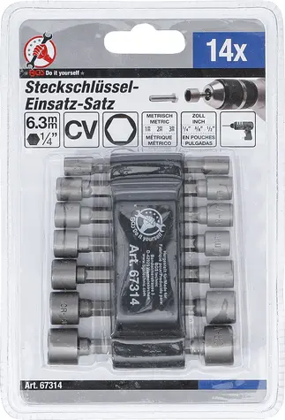 Sada nástrčných hlavic Kraftmann 1/4" BGS1067314 obsahuje 14 dílů v metrických i palcových rozměrech, vhodných pro práci s různými typy šroubů. Praktické balení usnadňuje přehledné uložení a rychlý výběr potřebné hlavice.
