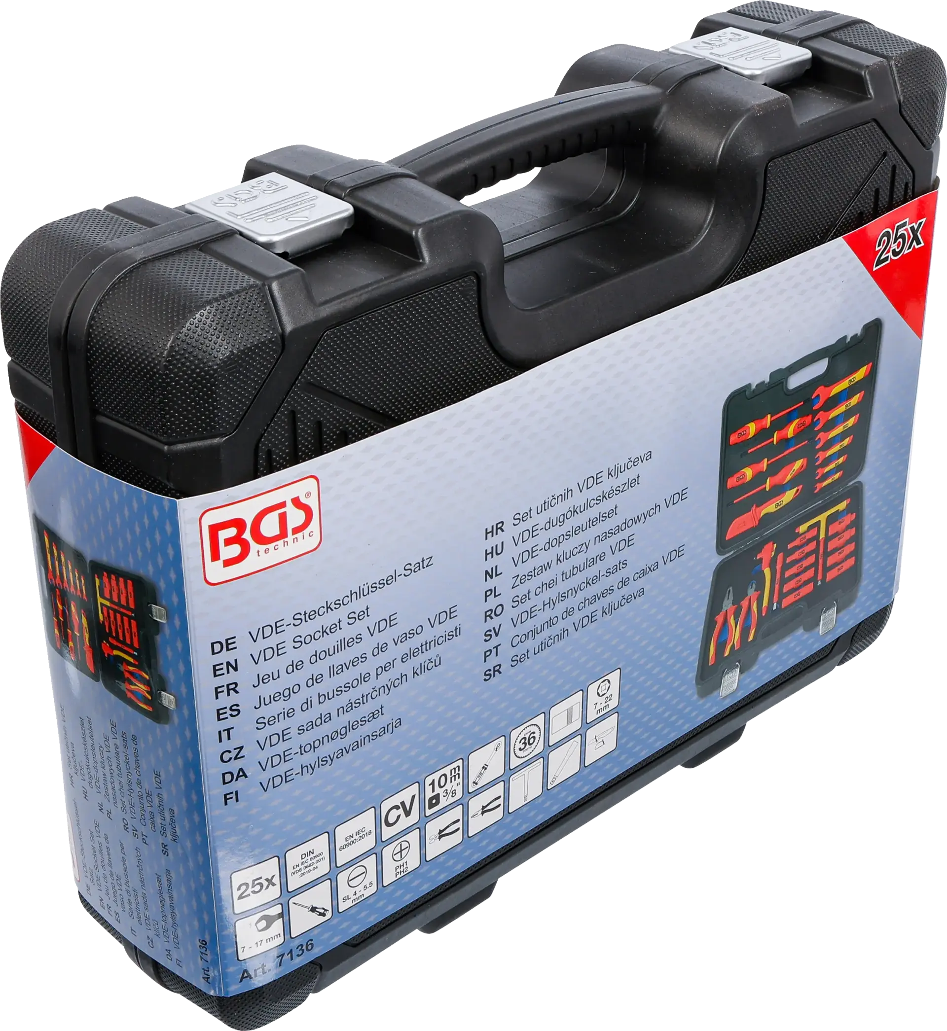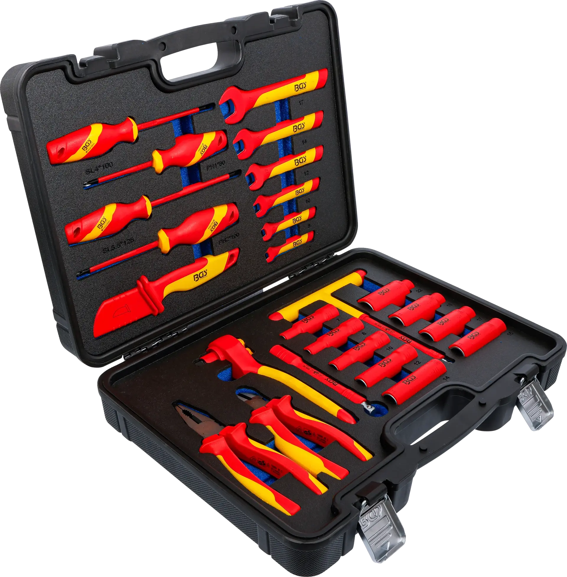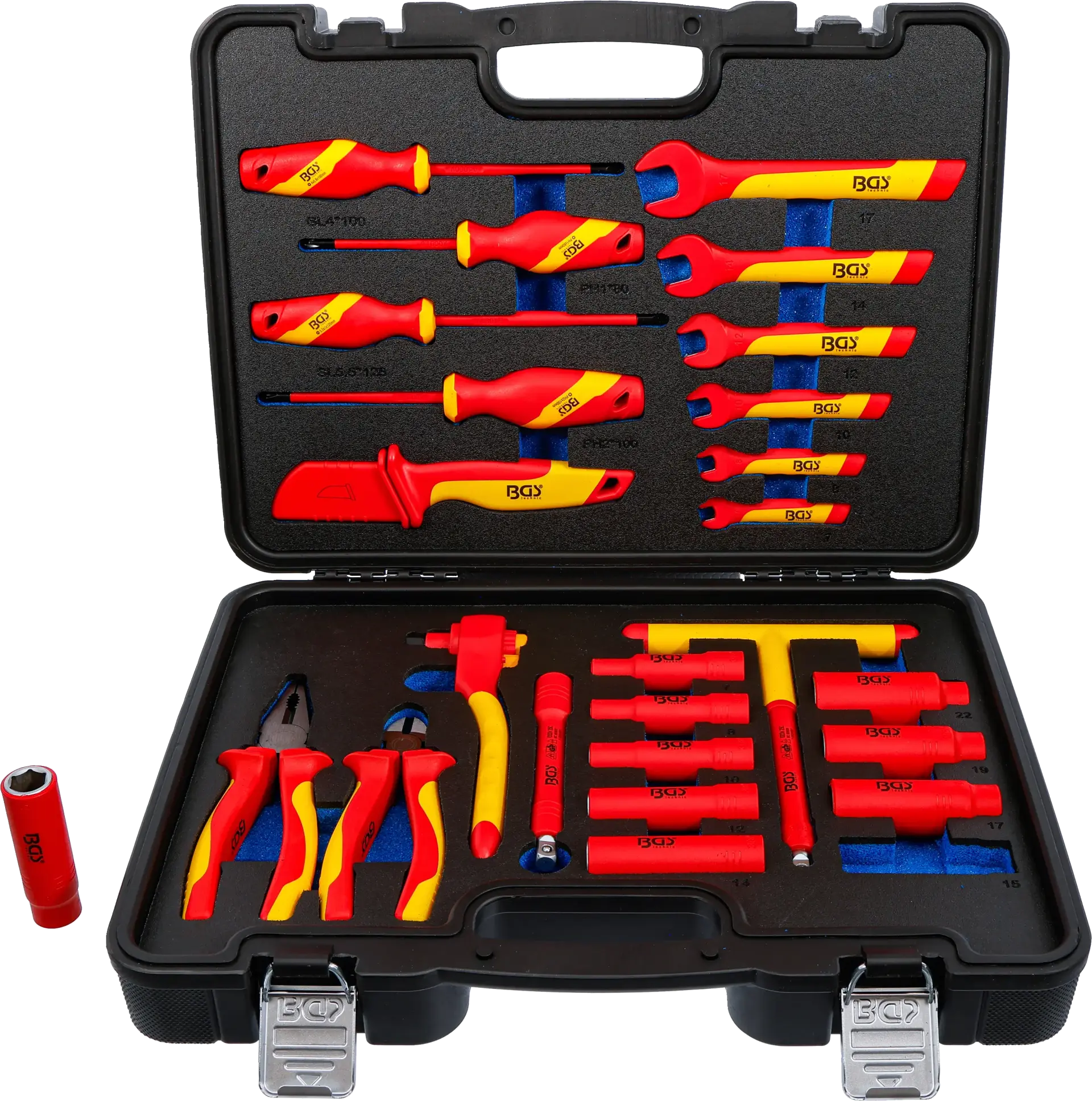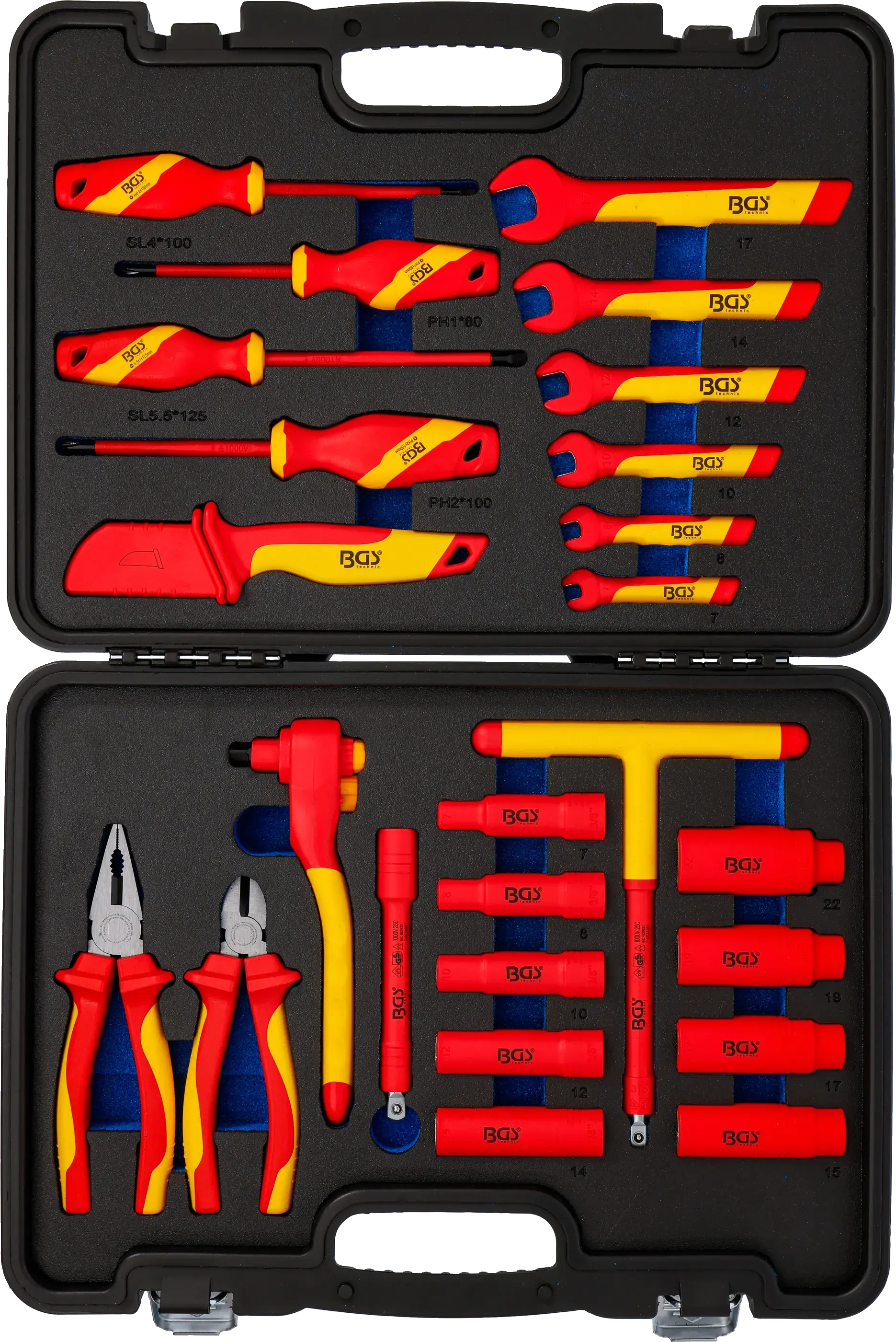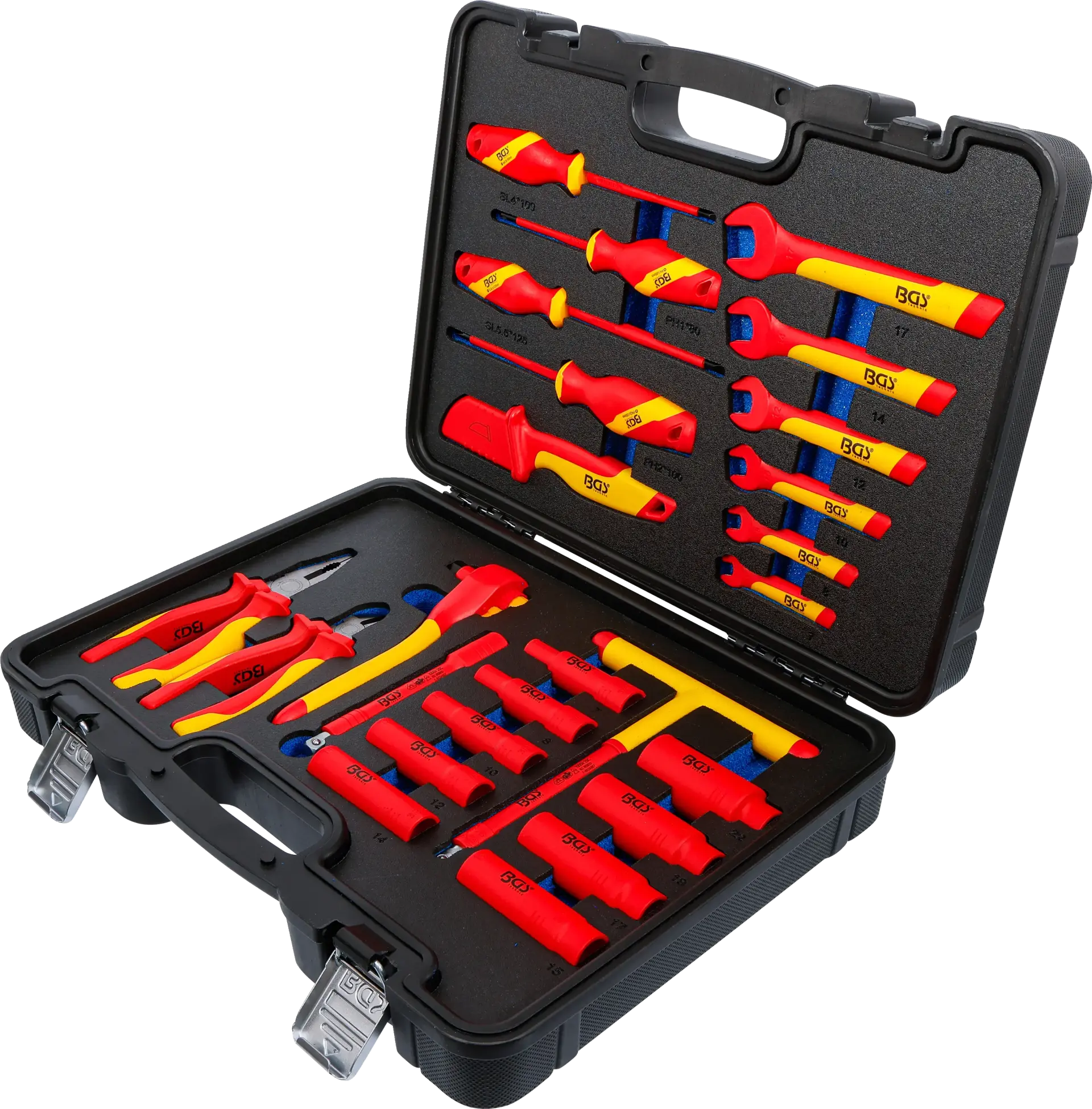 Sada izolovaného nářadí pro práci pod napětím (dle ČSN EN/IEC 60900) - gola sada 3/8" s oboustrannou ráčnou, hlavice Pro torque®, šroubováky, jednostranné klíče, kleště