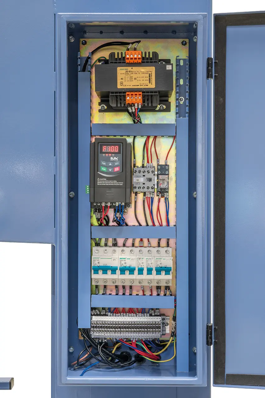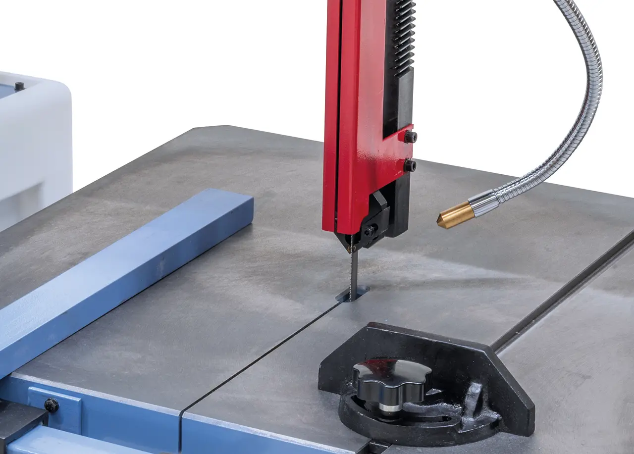 motor 1,5 kW, výška stolu 995 mm, délka pásu 4520 mm, rychlost pásu 15 ÷ 328 m.min-1, šířka řezu 585 mm, výška řezu 360 mm, naklápěcí stůl 700 × 660 mm, rozměry 1335 × 1060 × 2110 mm