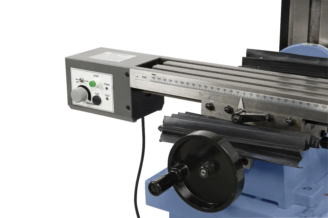 napájecí napětí 230 V, výkon motoru 350 W, otáčky (2 st. - plynule) 0 ÷ 2500 U.min-1, kužel vřetena MK 3, stopková fréza 10 mm, čelní fréza 30 mm, vyložení 165 mm, naklopení hlavy ±45°, vzdálenost vřeteno/stůl max. 290 mm, rozměry 510 x 550 x 760 m