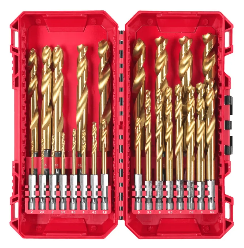 Vrtáky HSS-G do kovu Milwaukee SHOCKWAVE IMPACT DUTY TiN Red HEX 1/4", sada 25 kusů, 4932500420