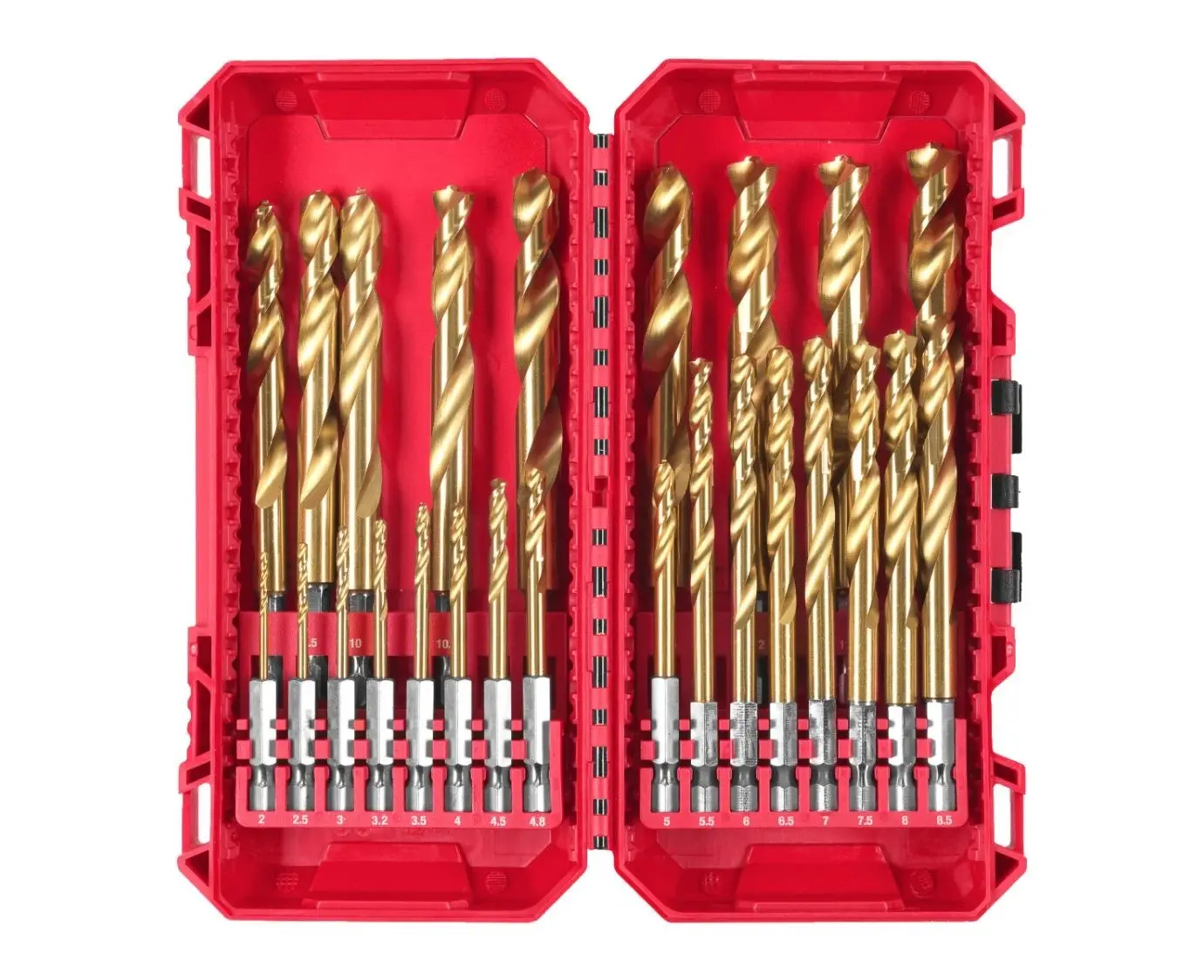 Vrtáky HSS-G do kovu Milwaukee SHOCKWAVE IMPACT DUTY TiN Red HEX 1/4", sada 25 kusů, 4932500420