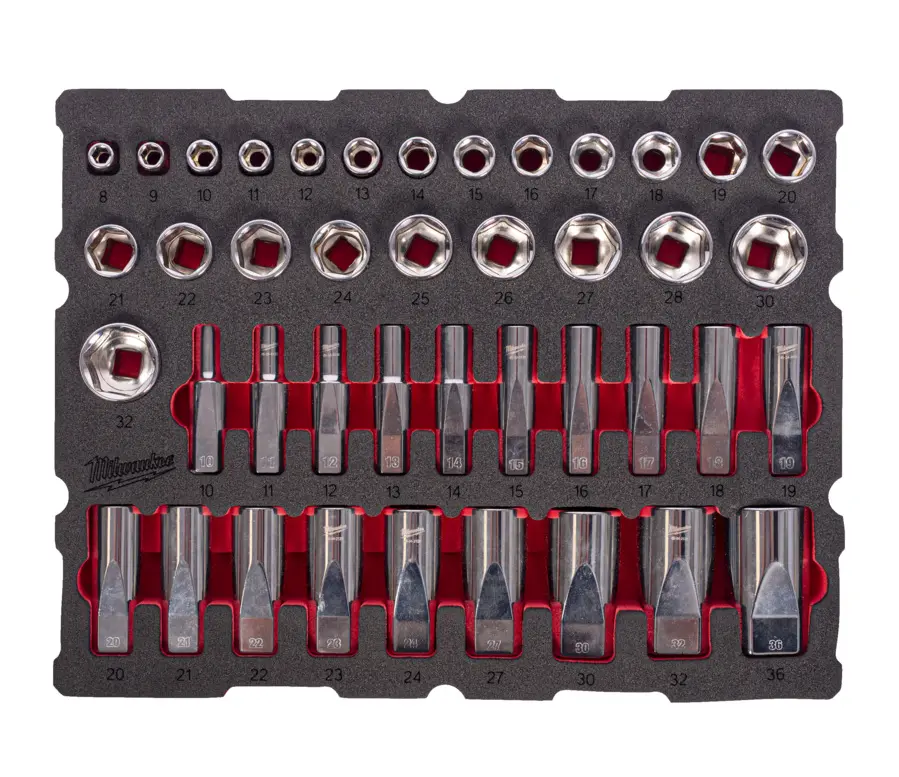 Vybavená pěnová vložka Milwaukee do PACKOUT boxu, nástrné hlavice 1/2", 42 ks nářadí, 4932501869