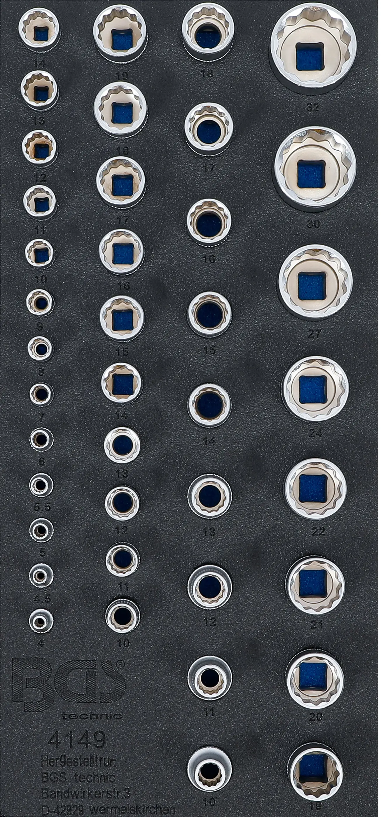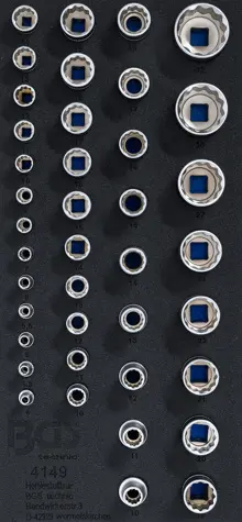 Vybavená vložka do dílenského vozíku na nářadí: nástrčné hlavice 4 ÷ 32 mm (40 dílů)