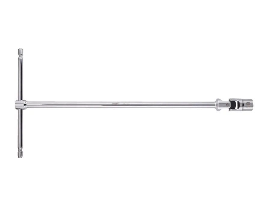 Výkyvná nástrčná hlavice Milwaukee HEX 19 mm s dlouhou T-rukojetí umožňuje snadný přístup i do hůře dostupných míst a zajišťuje pevné uchopení. Robustní konstrukce zvyšuje odolnost při častém používání v dílně i na stavbě.