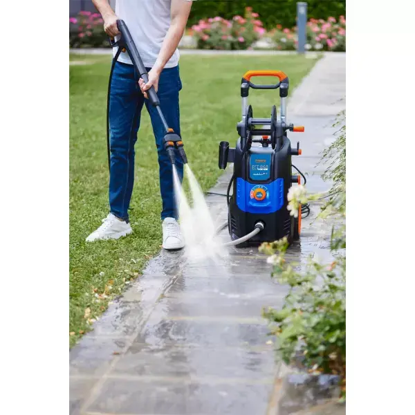Vysokotlaký čistič Narex 2700 W s tlakem 160 barů a systémem Dualtech, který , který díky součinnosti dvou výkonových jednotek výrazně zvyšuje průtok vody a urychluje čištění
