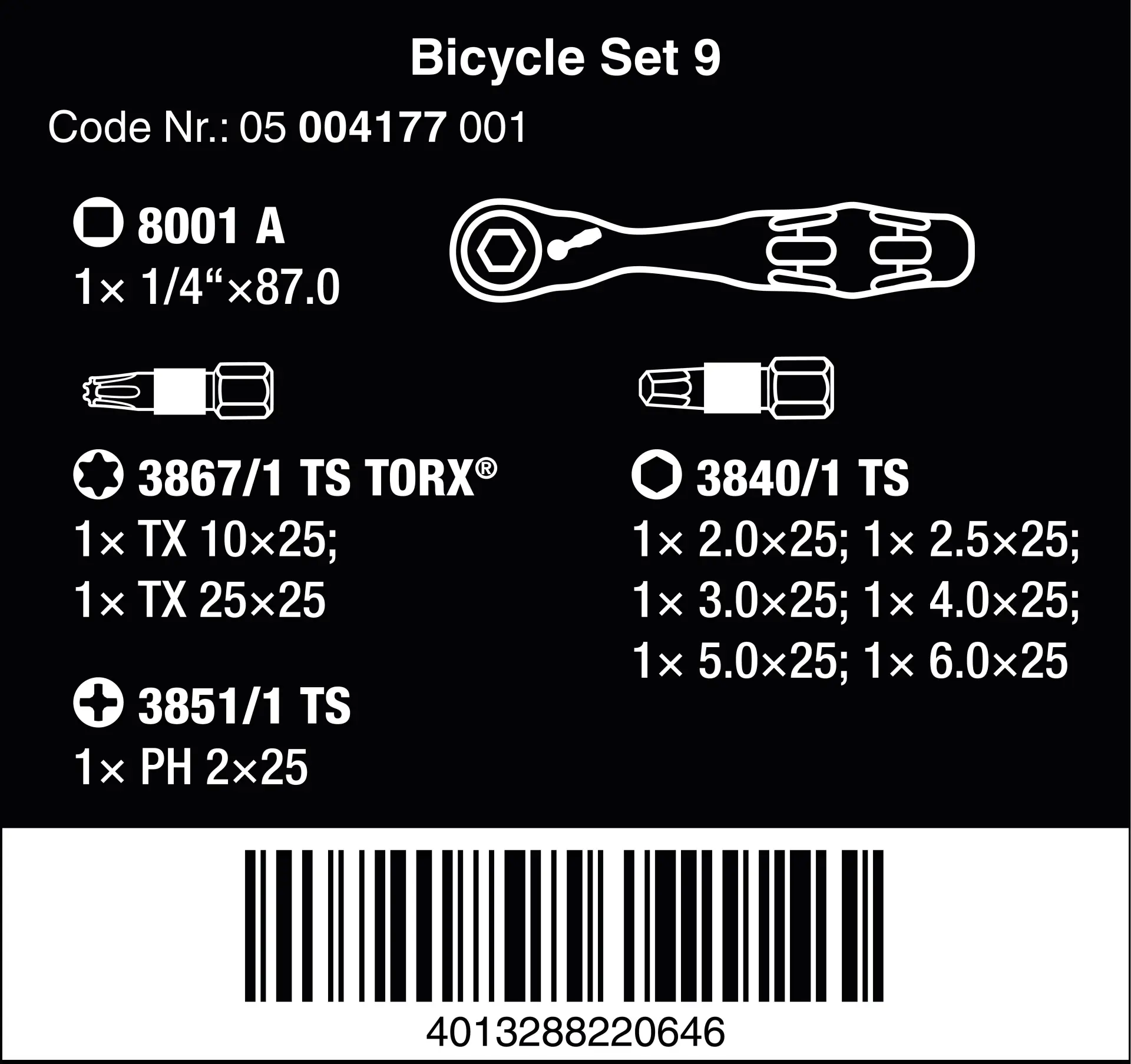 Wera 004177 Šroubovací bity Zyklop 1/4" Bicycle Set 9 s ráčnou 1/4" Mini 8001 A - 10 dílů (W05004177001)