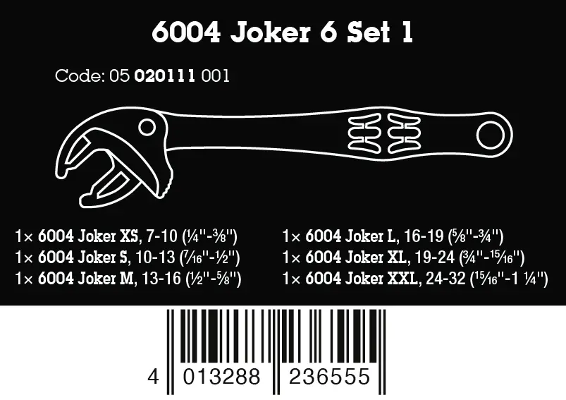 Wera 020111 Samonastavitelné otevřené klíče s ráčnou (7 ÷ 32 mm nebo 1/4"-1 1/4") 6004 Joker - 6 ks (W05020111001)