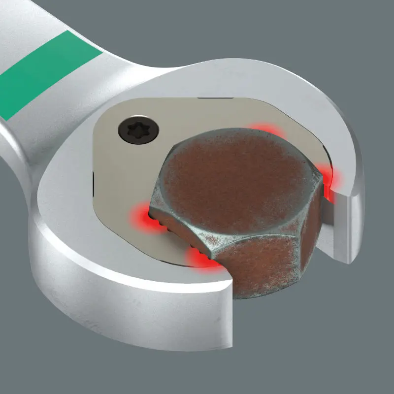 • Celosvětově unikátní kombinace otevřeného klíče Wera a očkového ráčnového mechanismu v dlouhém provedení