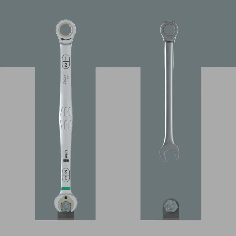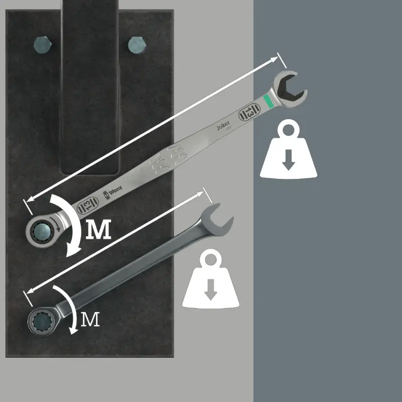 • Celosvětově unikátní kombinace otevřeného klíče Wera a očkového ráčnového mechanismu v dlouhém provedení