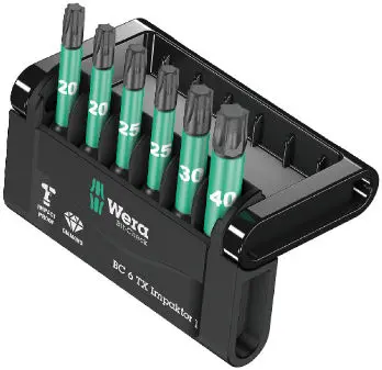 Sada Wera Bit-Check 6 TX Impaktor 1 obsahuje 6 bitů TX s technologií Impaktor pro šroubování s vysokým zatížením a dlouhou životností v náročných podmínkách. Kompaktní balení usnadňuje přenášení a organizaci bitů.