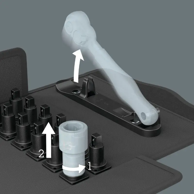 Uložení bez ztrát a snadné vyjímání vložek nástrčných klíčů