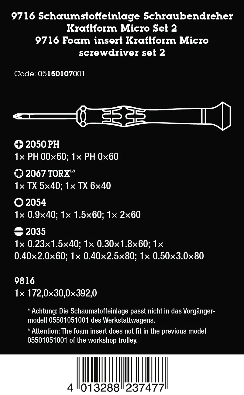 Wera 150107 Pěnová vložka 9716 Šroubováky pro elektroniku Kraftform Micro Set 2 - 13 ks (W05150107001)