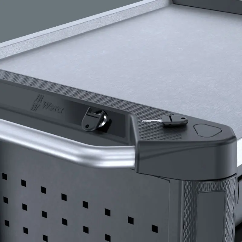 Samozavírací mechanismus a zamykací zásuvky zabraňují nechtěnému otevření a minimalizují riziko převrácení dílenského vozíku
