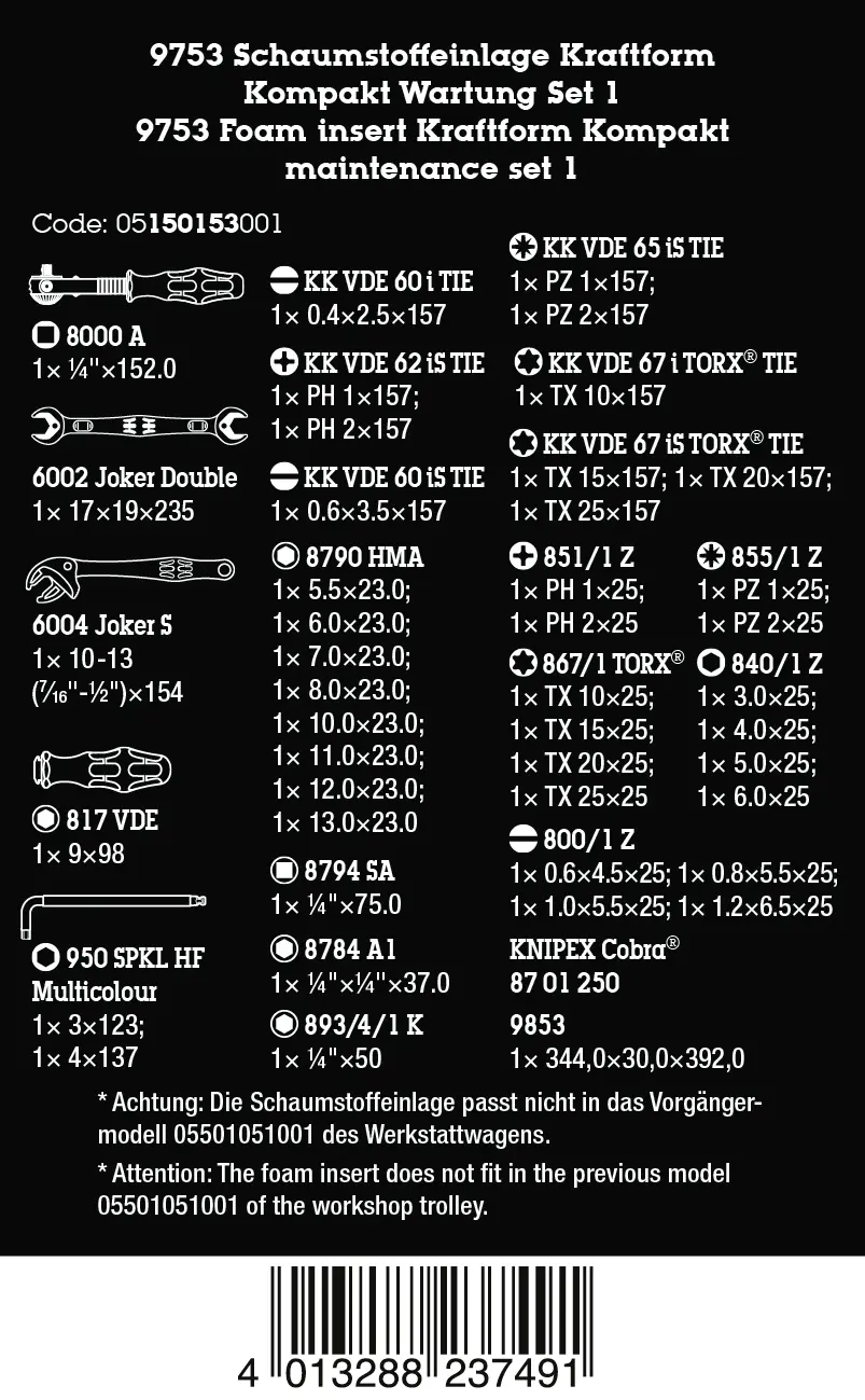 Wera 150153 Pěnová vložka 9753 Nářadí Kraftform Kompakt pro Údržbu 1 - 45 ks (W05150153001)